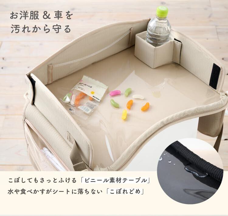 【車やベビーカーで使える!】 お出かけ中も退屈しない、お子さま用の万能チャイルドデスク。車のシートやベビーカーに取り付け可能です。 【遊びも食事もOK】 お絵かきやおもちゃ遊びにぴったり。お食事時も使えるビニール素材のテーブルだから、汚れてもサッと拭くだけ。 【便利な収納&設計】 両サイドには小物が入るポケットと、ゴミ袋をかけられるリング付き。おもちゃが転がり落ちにくい設計で安心。 【スマホやタブレットも楽しめる】 透明ポケットにスマートフォンやタブレットを収納して、動画やアプリを楽しめます。 【折りたたんで持ち運びもラク】 使わないときは折りたたんでコンパクトに。収納・携帯にも便利です。