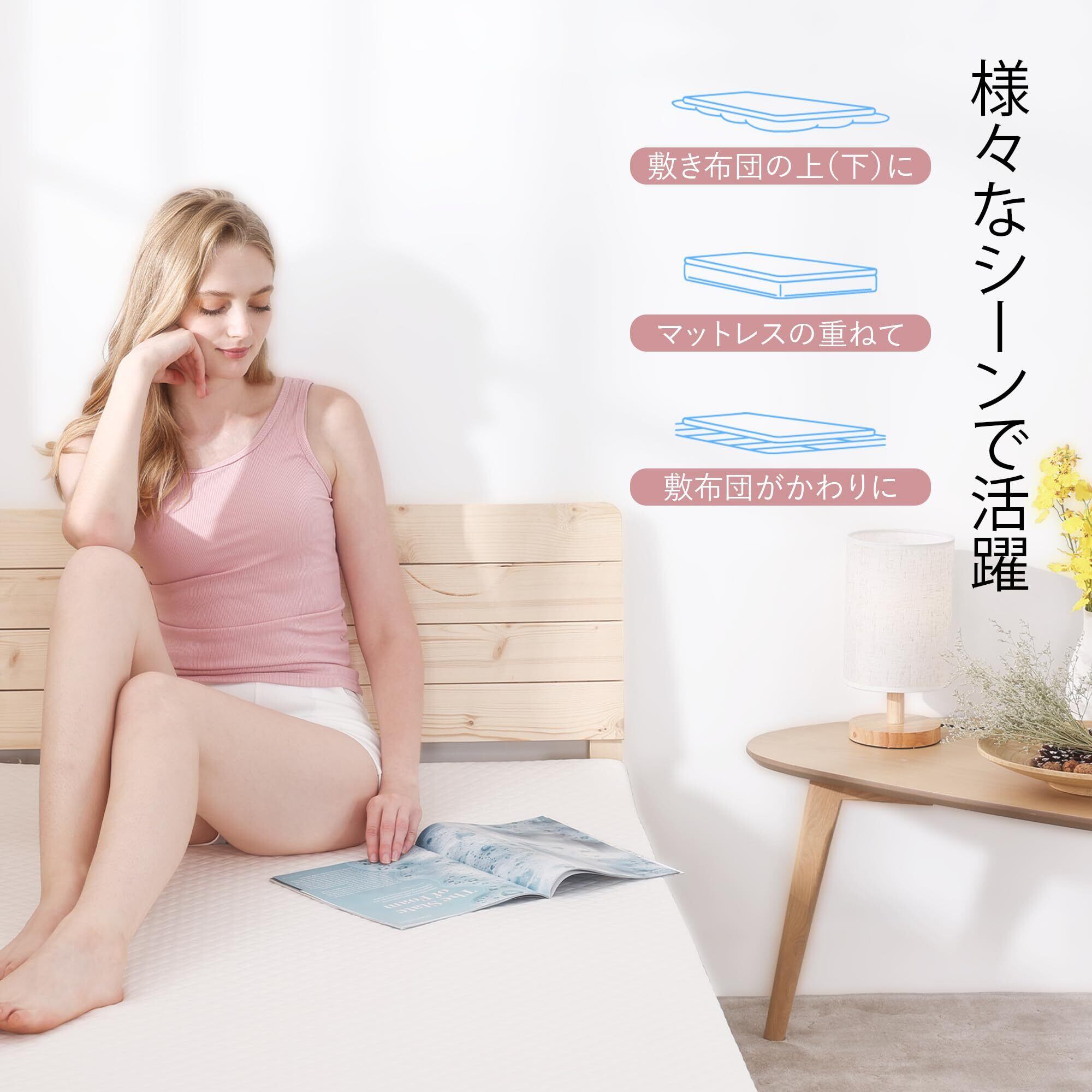 【簡単設置で高級な寝心地】厚さ3cm、重さ4.7kgの軽量設計で、現在の寝具に一枚追加するだけで、寝心地が大幅に向上いたします。裏面には滑り止め加工が施されており、ズレにくく快適です。床に直接敷いて布団としても使え、キャンプや車中泊、来客用、2段ベッドなど、さまざまなシーンで便利に活躍いたします。