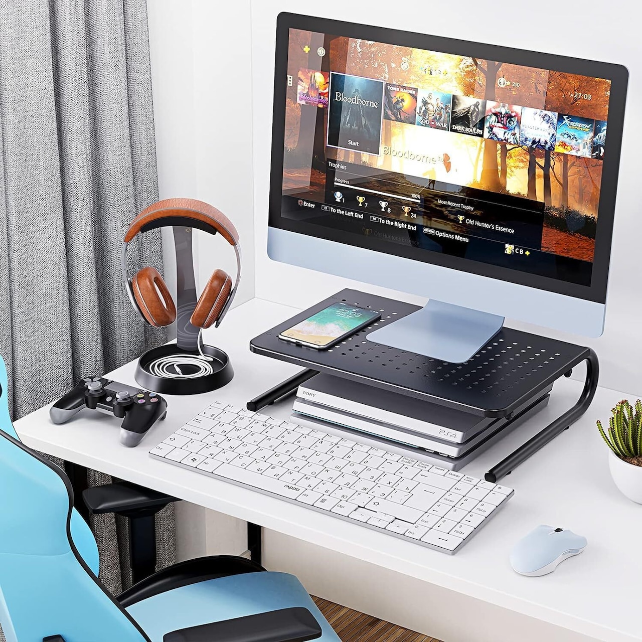 HUANUO (ファーノー) モニター台 机上台 モニタースタンド パソコン台 ディスプレイ台 耐荷重20KG スチール製 ブラック HNLL2