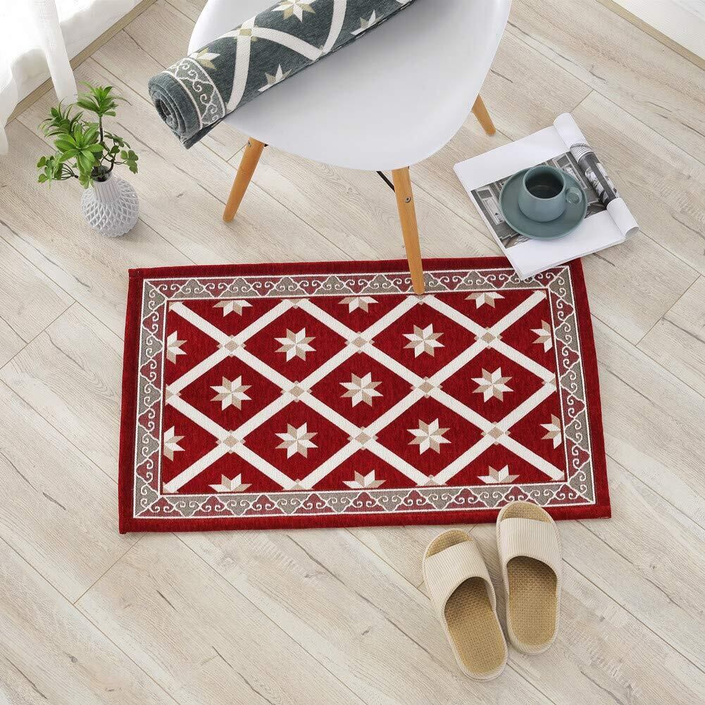 玄関マット カーペット 屋内 ドアマット おしゃれ 赤 - 50 * 80 cm 泥落としマット 洗える 吸水 夏用 - ゴブラン織り チェック柄 無地 滑り止め 床暖房対応 オールシーズン適用 低反発 業務用 家庭用 オフィス用 レッド