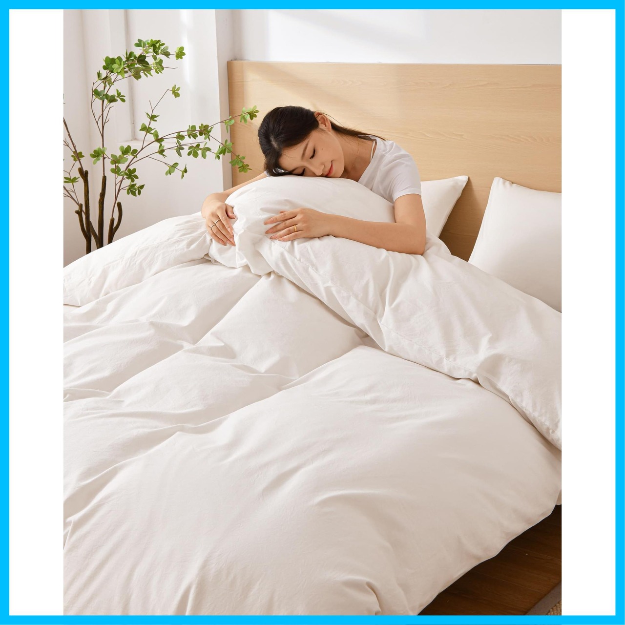 【数量限定】AYO 寝具カバーセット 布団カバーセット 洗いざらし シワ加工 水洗い やわらか (掛け布団カバー ボックスシーツ 枕カバー)吸水速乾 丸洗いOK 肌に優しい 無地 シンプル オールシーズン(シングル・3点セット ホワイト)