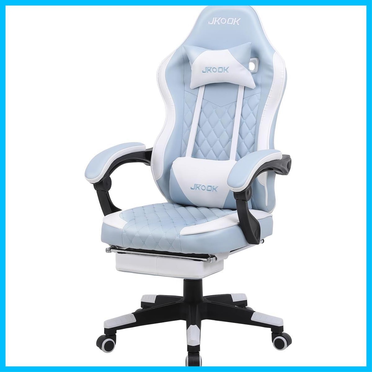【特価セール】JKOOK ゲーミングチェア オットマン付き 多機能 連動ひじ掛け ゲーム用 デスクチェア 男女兼用 学習椅子 PUレザー JK08 (水色)