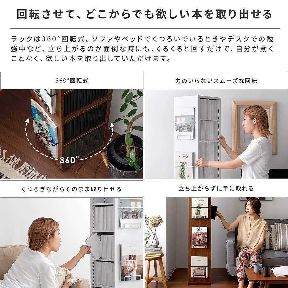 エア・リゾーム 本棚 回転 スリム 大容量 おしゃれ マガジンラック ブックシェルフ 回転式コミックラック Glory(グローリー) ブラウン