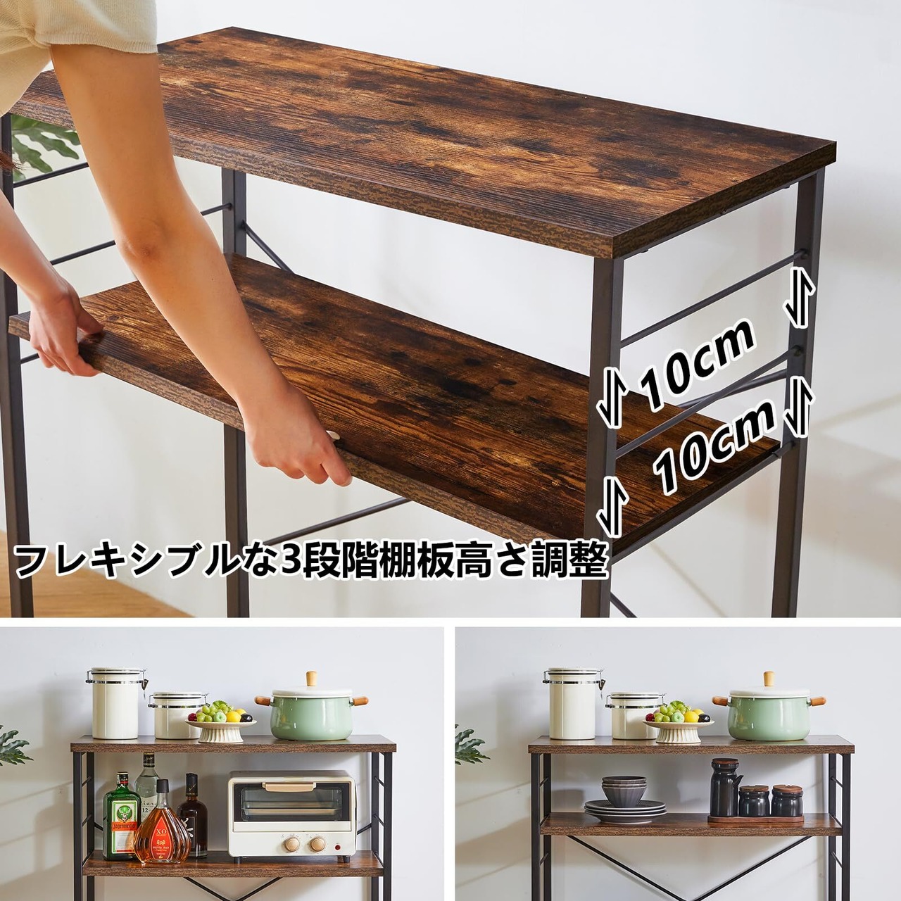 【高さが変えられるリムーバブルラック】このレンジプレートは高さが変えられるリムーバブルラックで、フックに引っ掛けるだけで簡単にラックを動かすことができます。電子レンジ、オーブン、炊飯器、コーヒーメーカーなど、さまざまな家電サイズに対応しています。3つの高さは自由に調節でき、工具は不要です。サイズは自由に調節できます。