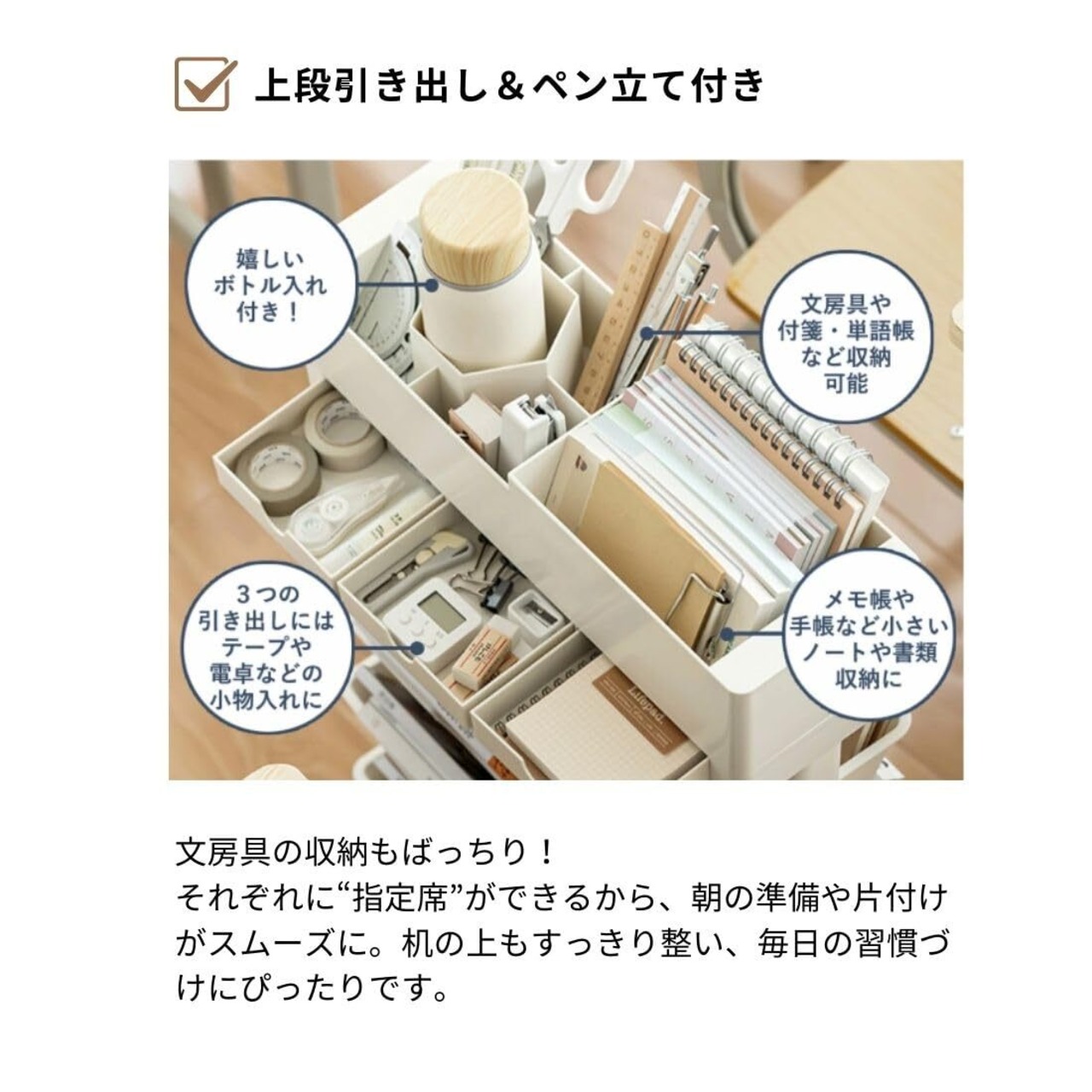 【こんな悩みありませんか?】教科書や筆記用具が出しっぱなし...どこに何があるのかわからなくて、朝の準備がいつもバタバタしちゃう...など、お片付けがうまくいかない、そんな悩みを解消してくれるデスクサイドラックです!