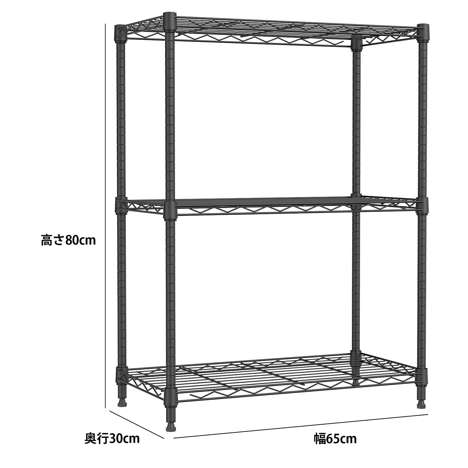 【特価商品】IZEUK スチールラック 3段 高さ伸縮メッシュ 収納棚 防錆加工 パイプ棚 スリム ポール径19.1mm パーツ対応 全体耐荷重292.5kg 幅65×奥行30×高さ80cm 頑丈 ワイヤーシェルフ メタルラック ブラックオシャレでかわいい 業務用/玄関/リビング/リビング/ランドリー/浴室/キッチン アジャスター
