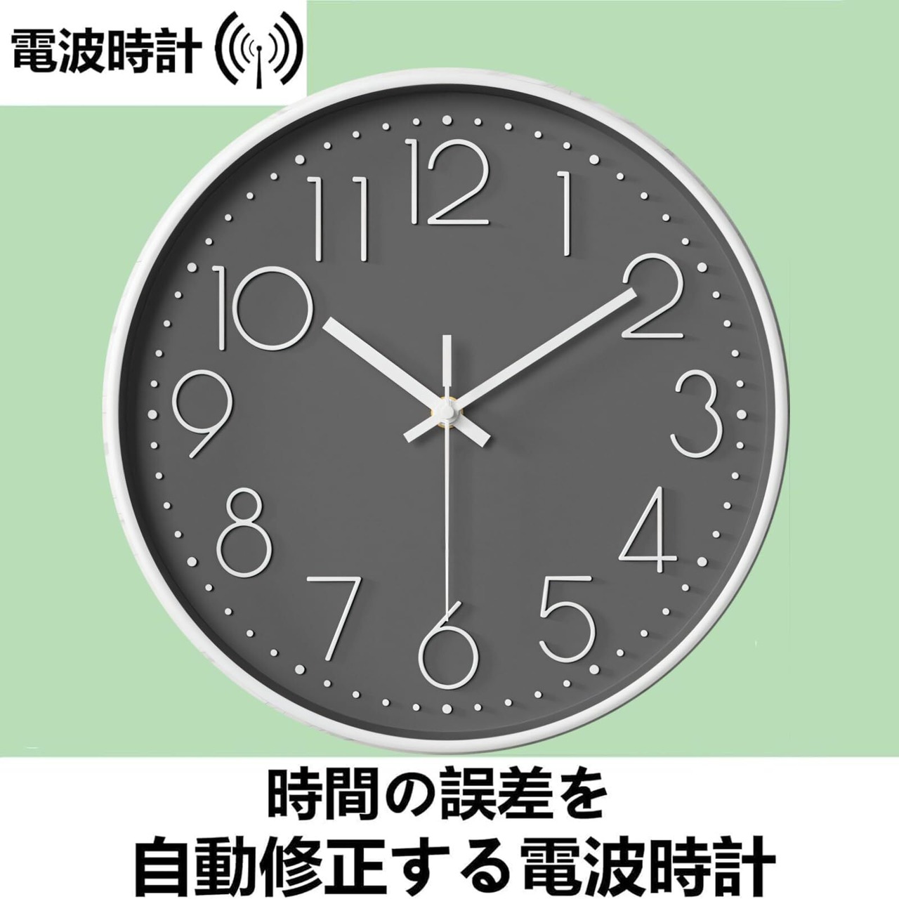 機能 : 秒針の音がコチコチならない静かな連続秒針を採用・時刻を自動で修正する電波時計・立体文字