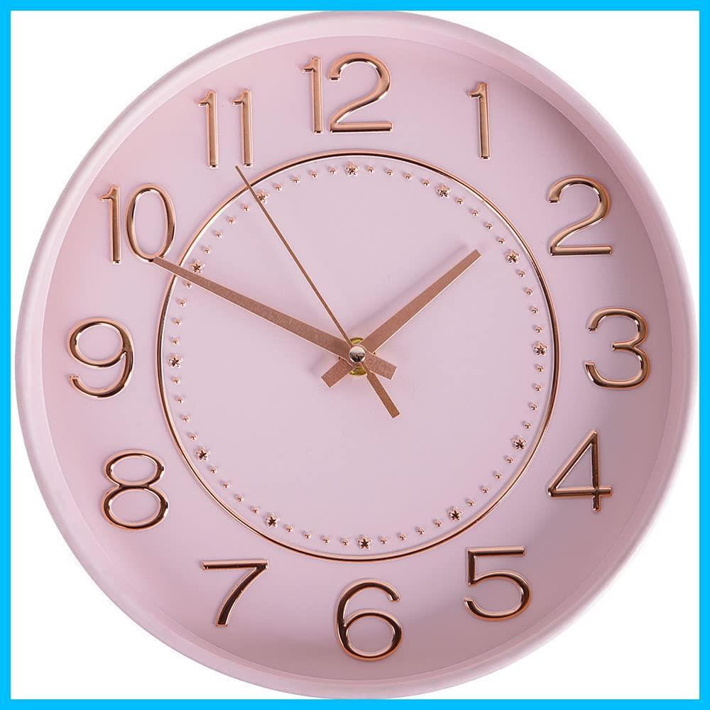 掛け時計 おしゃれ 静音 壁掛け時計 連続秒針 屋内壁かけ時計 直径25CM (ピンクゴールド)…
