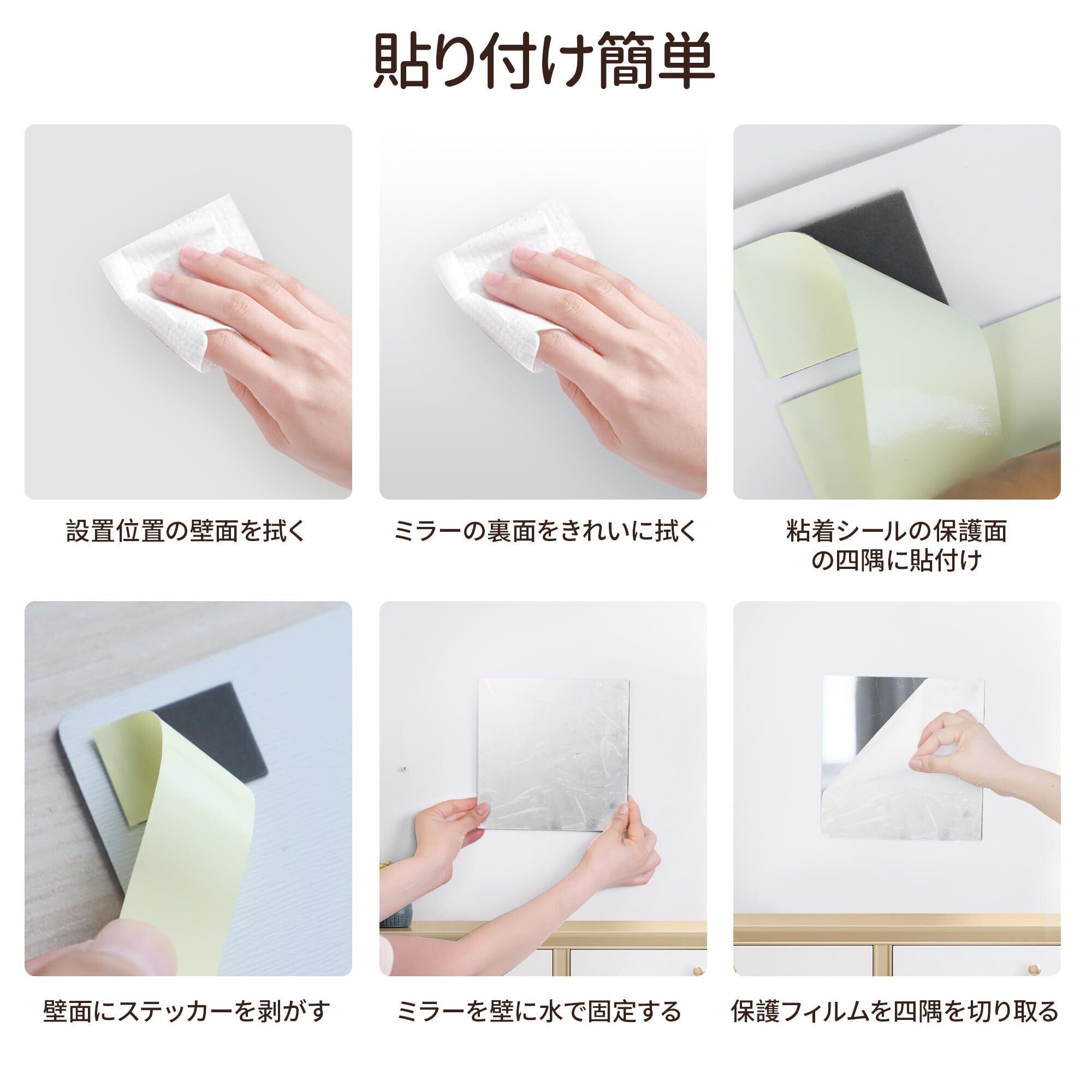 【特価商品】Hohoemi 割れない鏡 30×30cm 4枚セット 姿見鏡 壁掛け全身鏡 強力粘着テープ 防傷保護フィルム 玄関・浴室・リビングなど多用途対応 どこでも貼れる