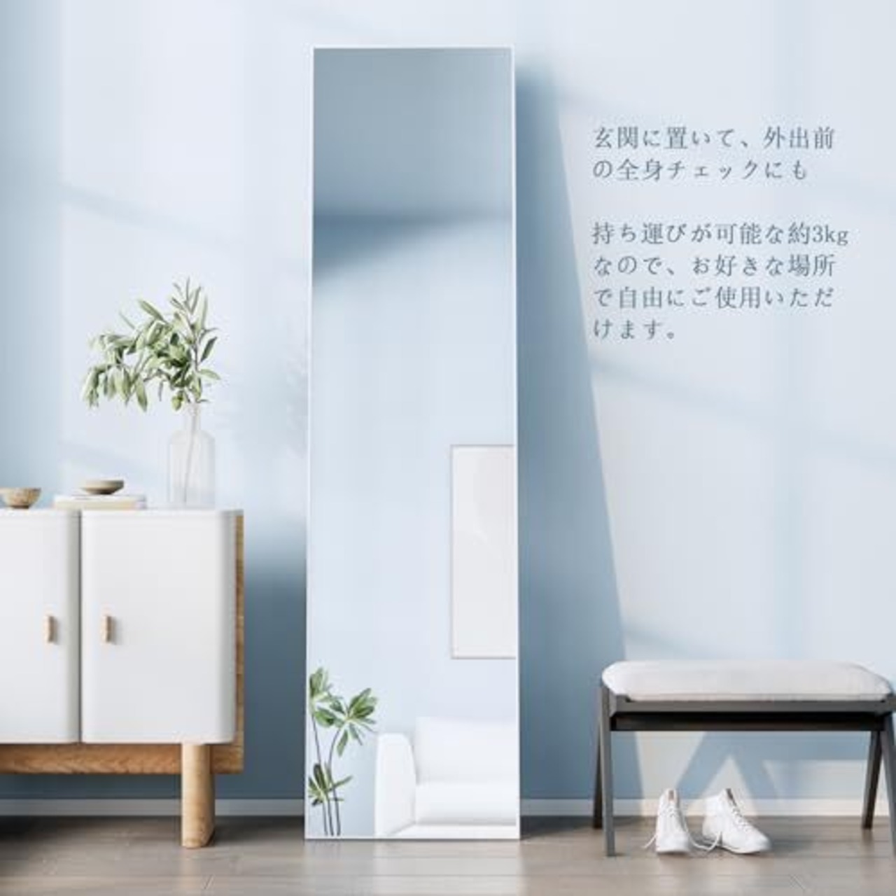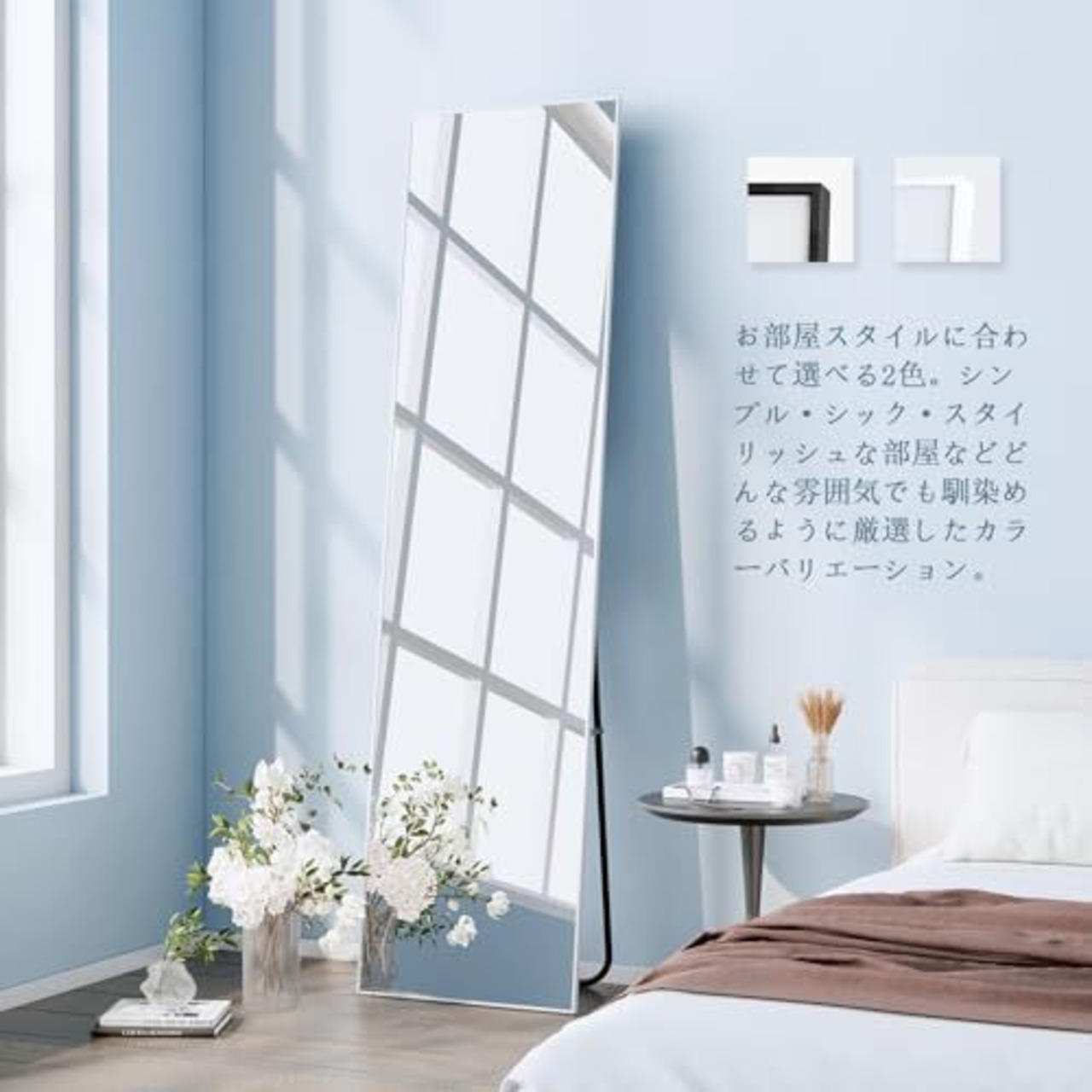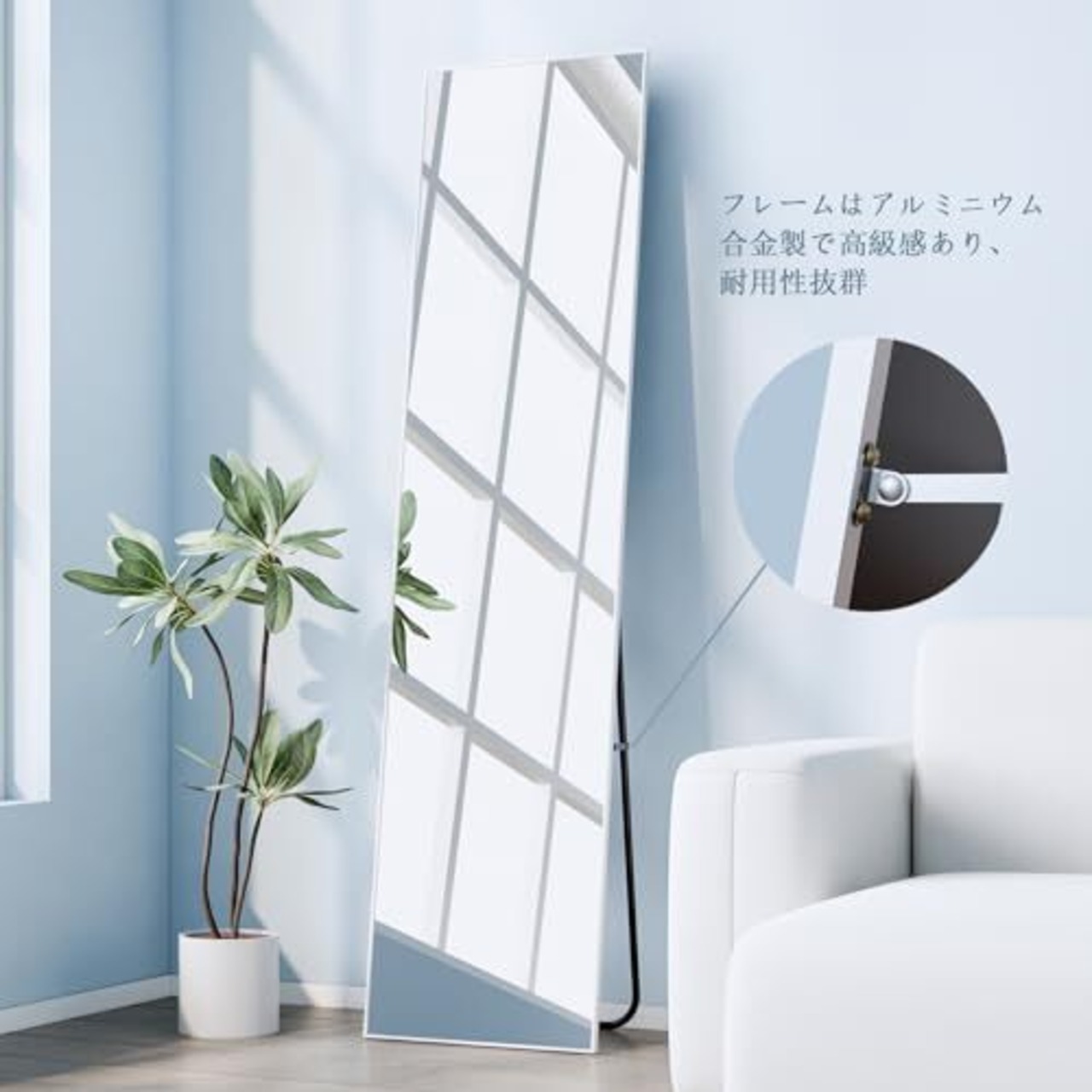 【ファッションデザイン】 アルミニウム合金フレームには精巧なデザインが施された全身鏡、モダンで洗練された外観がインテリアに高級感を添えます。薄型ベゼルにより、見た目が美しいだけでなく、省スペースであるため、狭い部屋や廊下に最適です。