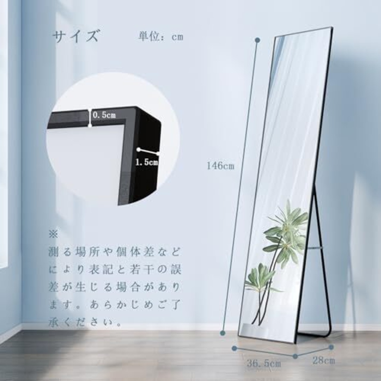 【耐久性に優れた高品質】 アルミ合金製のメタルフレーム、軽量でありながら耐久性に優れ、抗酸化・防食性があるため、製品の長寿命と美しい外観を保証します。高品質の鏡面素材は、クリアな反射効果を提供し、歪みやぼやけが少なく、お客様が正確に自分の姿を確認できます。スタンドミラーの表面には特殊な処理が施されており、鮮明な反射効果を保ちながら、視覚的な障害となるテクスチャや傷がつきにくく、お客様が全身を鮮明に映し出すことで、より良い外観を決定する手助けをします。