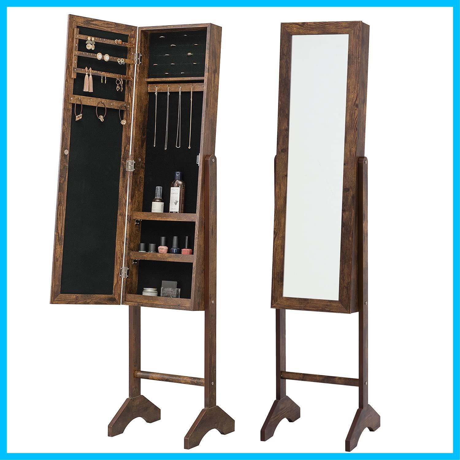 【数量限定】萩原 ドレッサー ミラー 姿見 収納付き アクセサリー 隙間 シンプル 木目調 収納 高さ153cm アンティークブラウン MD-6562BR 【木目調】ブラウン×ブラック