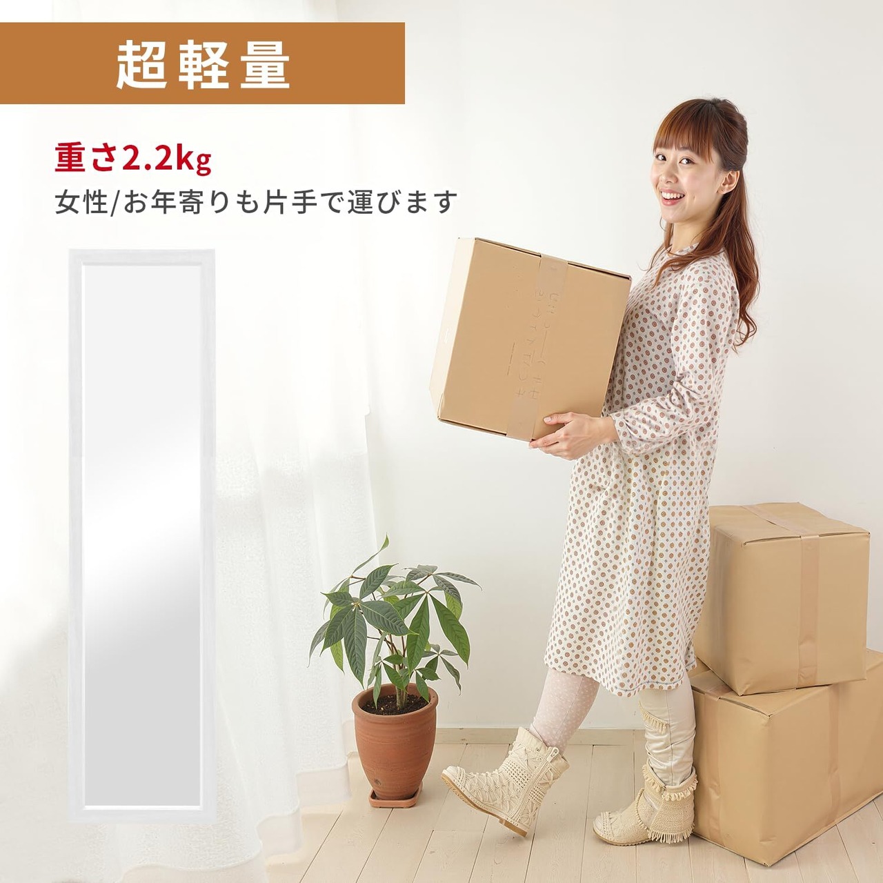 ミルオ君の鏡工房(Miruo) ドア掛けミラー 全身鏡 姿見 高さ調節式 壁掛けミラー PSフレーム 軽量 工具不要 118*30 ホワイト