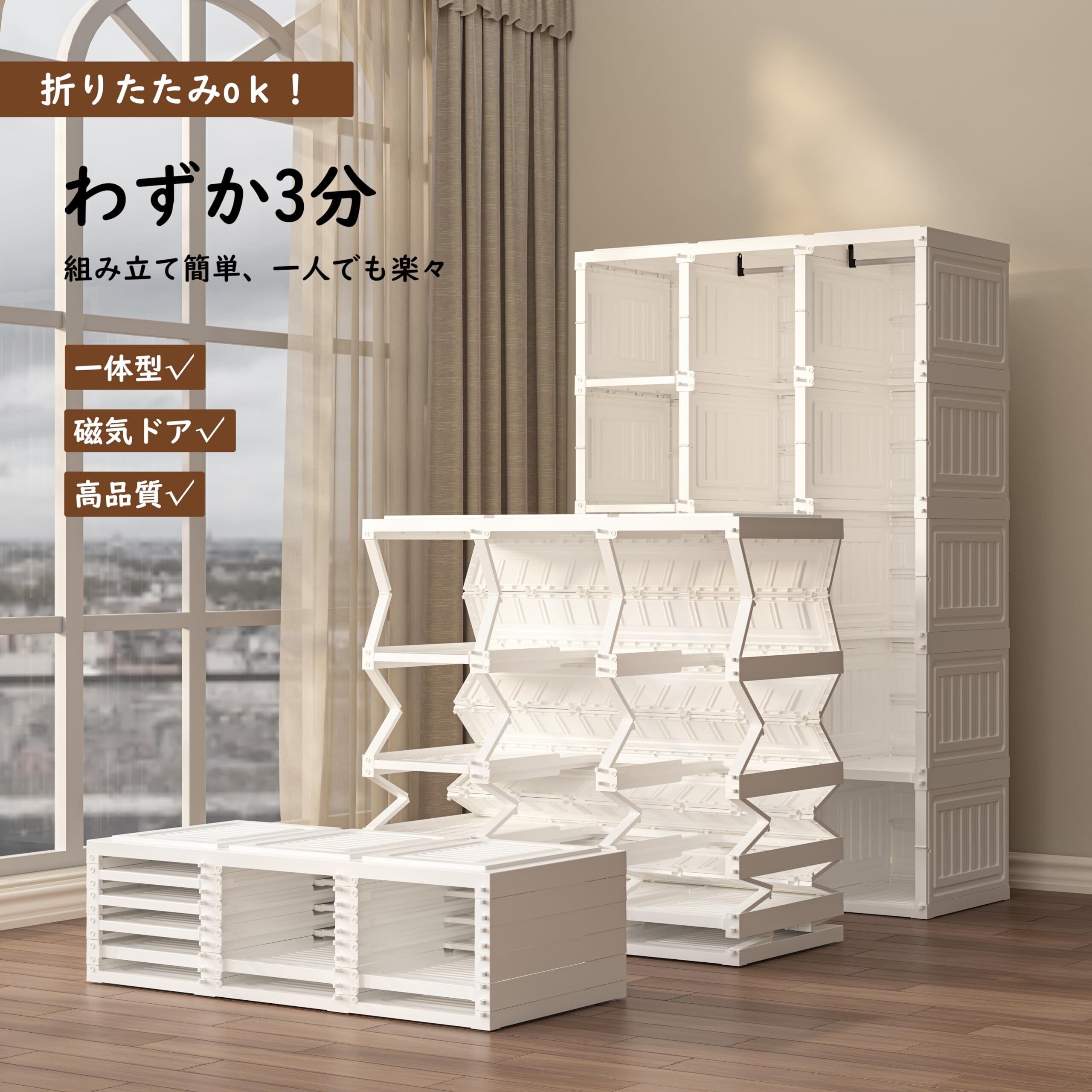 Mayi Box ワードローブ クローゼット 一体折りたたみ式 収納 扉付き 洋服ダンス ハンガーラック 大容量 衣類 雑物 防塵 省スペース 高耐荷重 新生活 おしゃれ (6グリッド-1ハンガー)