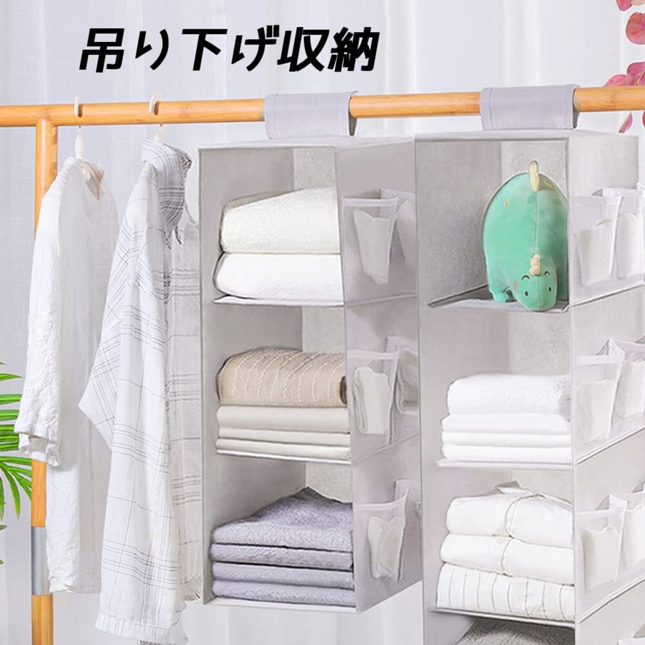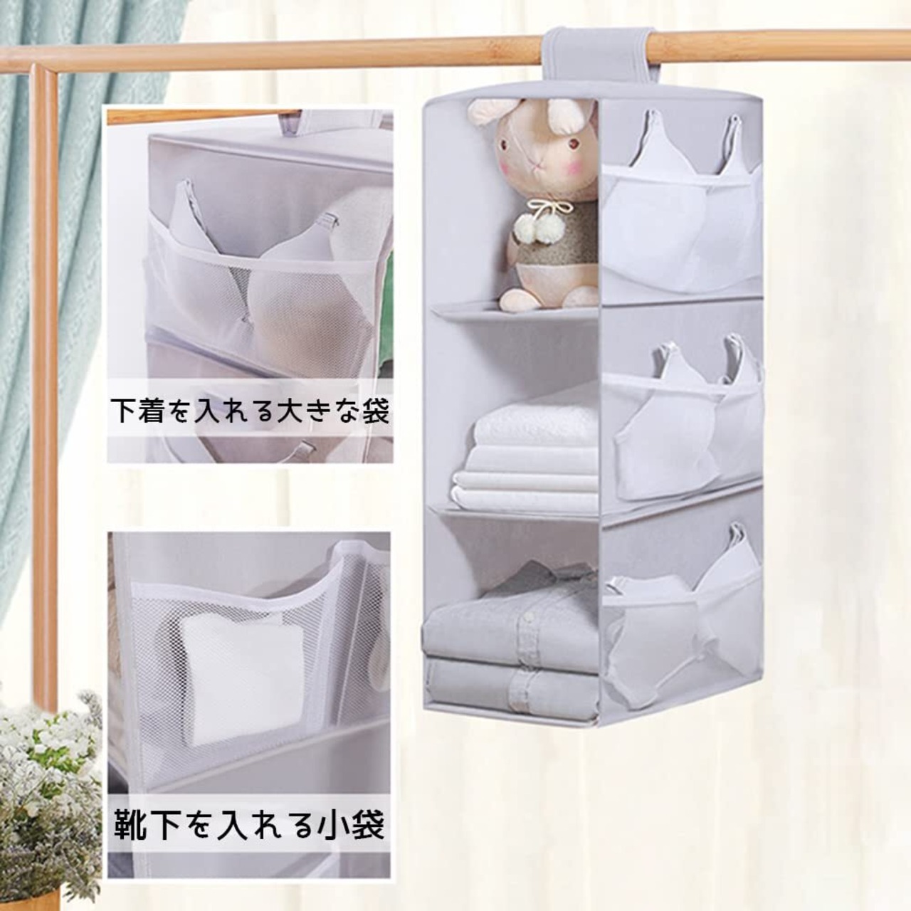 【在庫処分】YFFSFDC 吊り下げ収納 3段 クローゼット クローゼット 収納 吊り下げ 衣類ラック つりさげ 収納 帽子 服 下着 靴下 収納 バッグハンガー 水洗い可能 防湿防カビ 取り付け簡単(グレー)