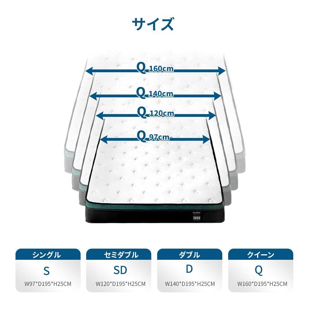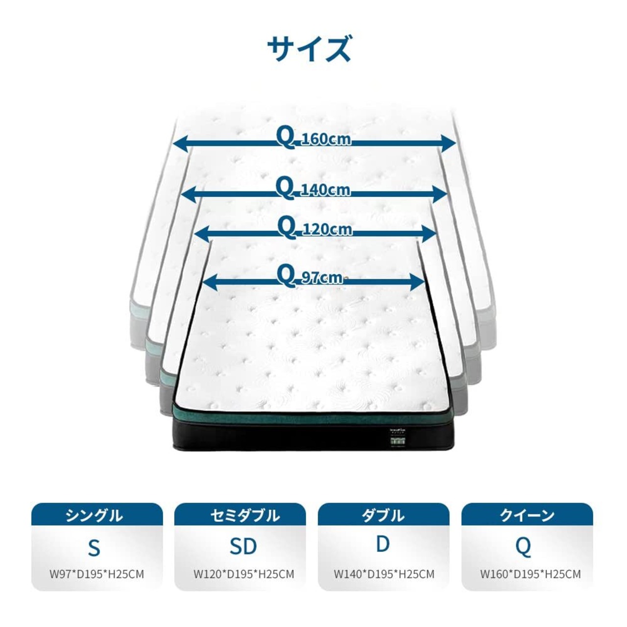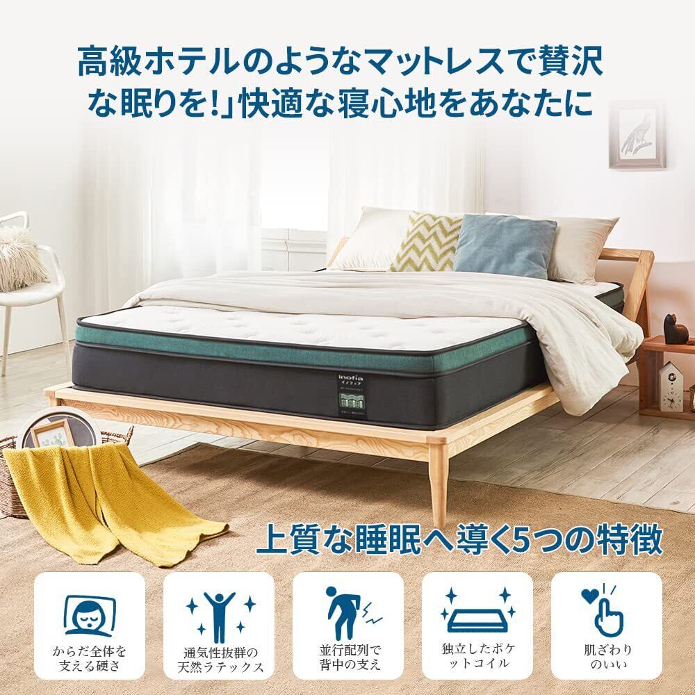 【厚さ25cm、理想のな寝心地へ】「Inofia」マットレスの厚さが25cmで、上質な素材を選び、柔らかく、通気性が良く、サラッとした肌触りです。さらに、独立したポケットコイルスプリングが身体をしっかり支えています。「純」高反発マットレスがしっかり支えて腰にリラックスしてくれます。生地のツッパリ感をおさえ包み込む様な優しい寝心地を実現しております。