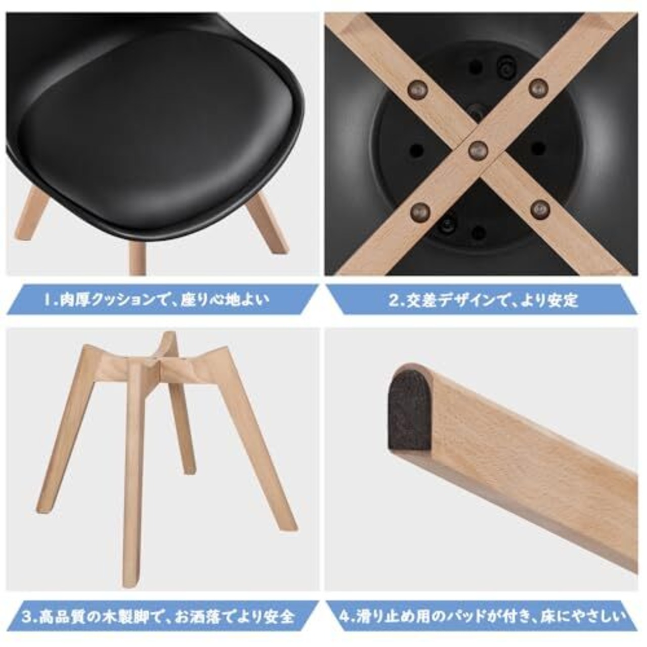 Yaheetech ダイニングチェア イームズチェア 4個セット 食卓椅子 天然木脚 クッション付き PU座面 北欧風 おしゃれ リビングイス 4脚セット 天然木 レザーチェア 組立簡単 48.5x53x81.5cm(ブラック)