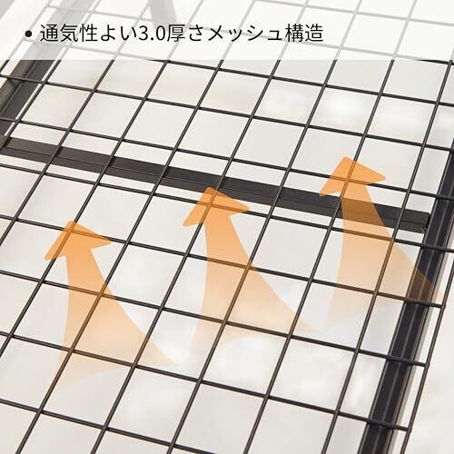 【安全構造】日本デザインの頑丈な構造で、耐荷重400-450kgを実現。ベッドフレームにはスチール(エポキシ樹脂塗装)を採用し、宮棚部分は強化紙化粧繊維板を使用。さらに床を保護するプラスチックキャップ付き脚部を装備しています。通気性に優れたスノコ構造と静音設計を採用。厚いパイプを使用しているため、がたつきやきしみ音が一切なく、静かな睡眠環境を保証できます。