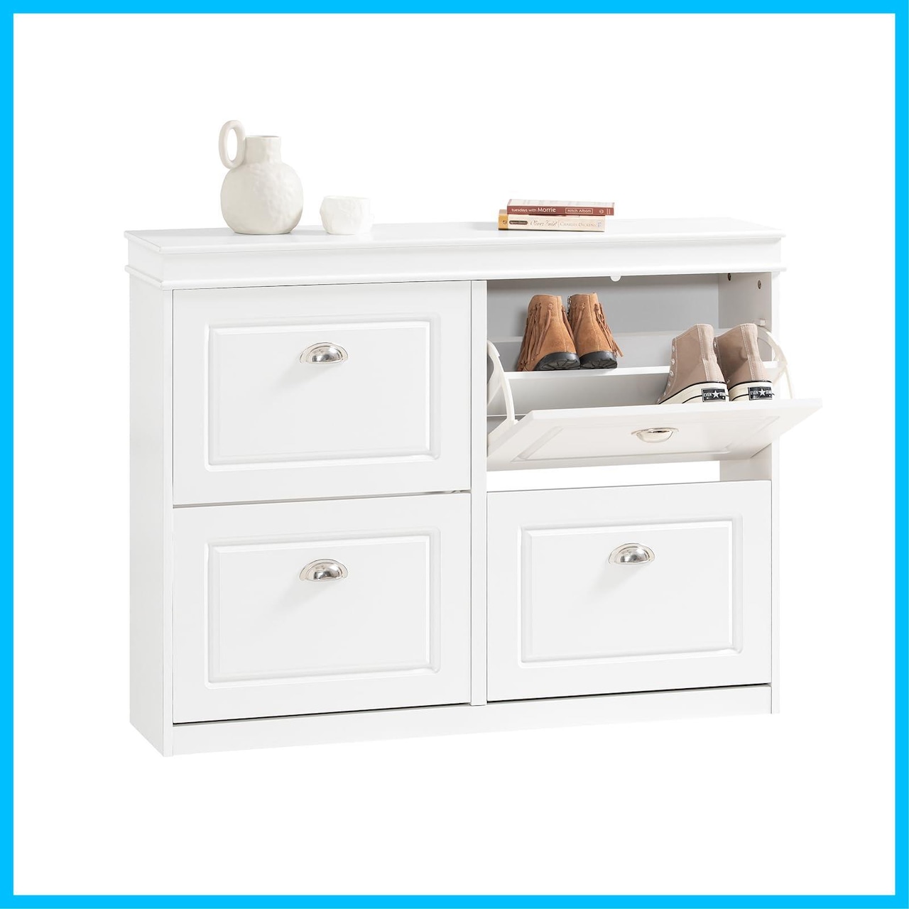 【薄型シューズボックス】奥行24cmだけ、狭い玄関の靴収納問題を解決します。天板にも、鍵やスマホとかの小物を置けます。