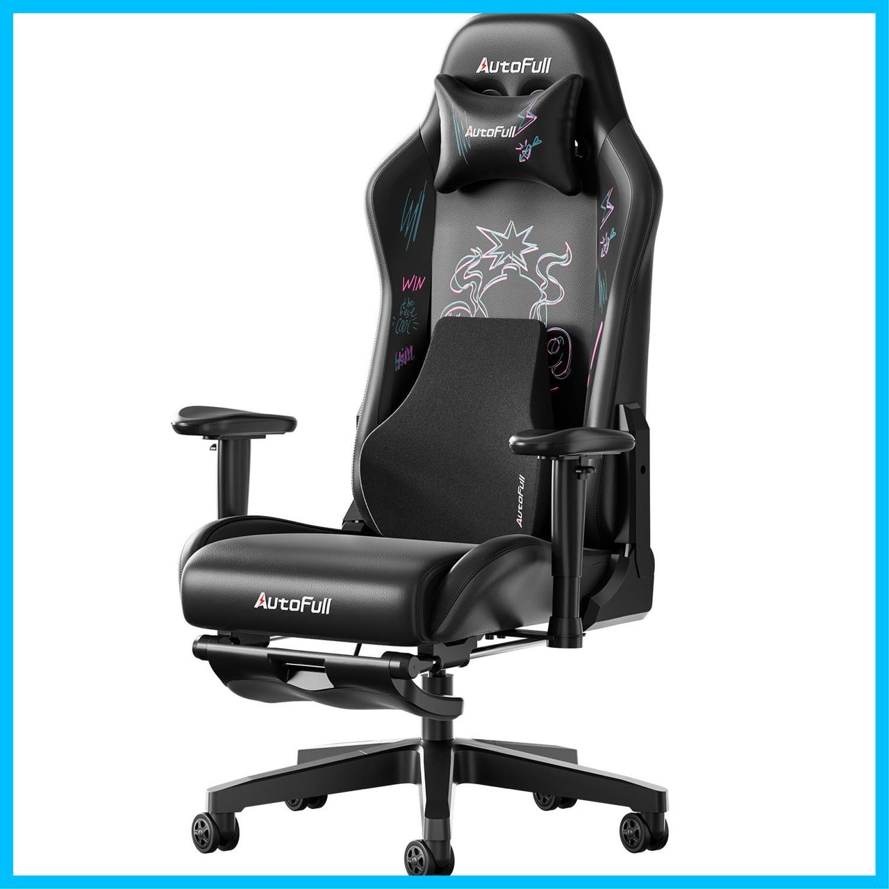 AutoFull(オートフル) C3 ゲーミングチェア 3D刺繍 デスクチェア 人間工学 3Dランバーサポート 椅子 座り心地最高 腰痛対策 昇降アームレスト チェア 人間工学フットレスト 在宅 リモート パソコンチェア PUレザー ブラック 黒 3年