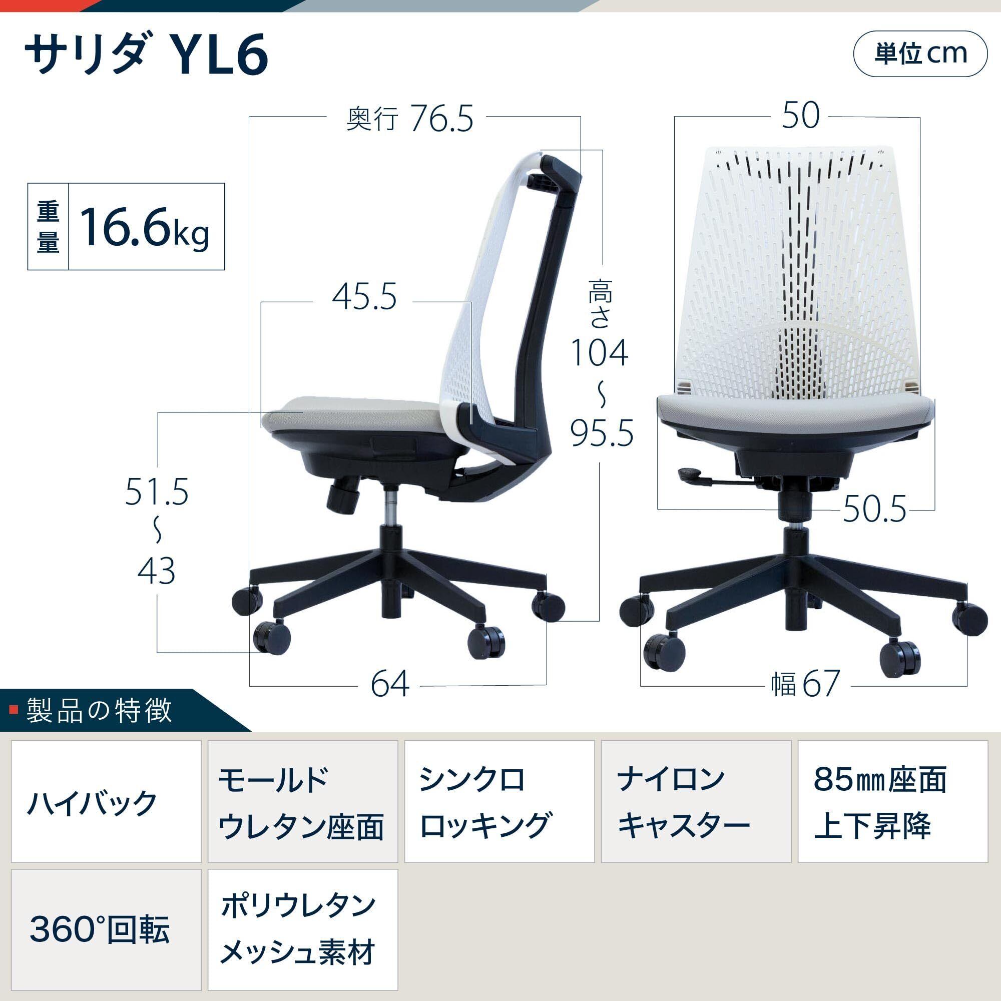 【ITOKI SALIDA YL6】累計販売台数1万台を超える人気シリーズ。背座が連動して動くシンクロロッキングやこだわりの座面を採用したことで快適な座り心地を実現。デスクワークの負担を軽減します。