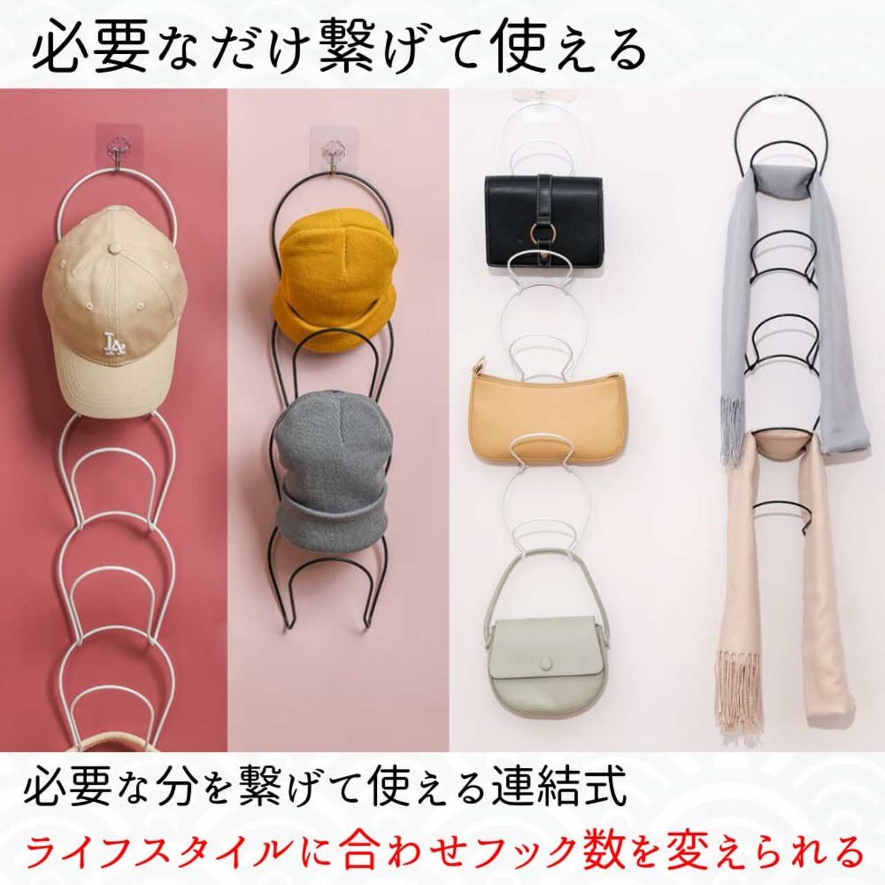 【帽子をしっかり守る】帽子の重ね置き防ぎ、型崩れから守ってくれる帽子掛け。帰宅後に帽子をフックかけて干しておけば湿気と気になる臭い対策にもバッチリ。大切なアイテムを大切に長く使いたい方にピッタリ。