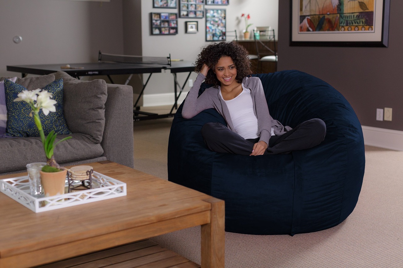 ソファサック(Sofa Sack) ウルトラソフト クッションチェア ネイビー ビーンレス マイクロスエードカバー付き プラッシュ メモリーフォーム 152D×152W×76Hcm 【日本正規輸入品】