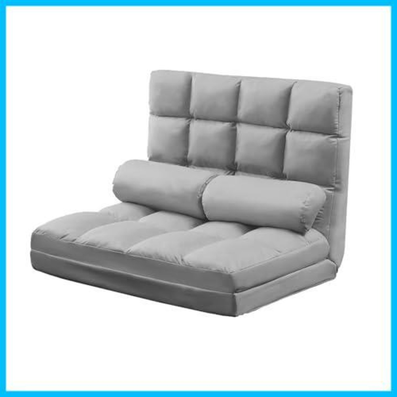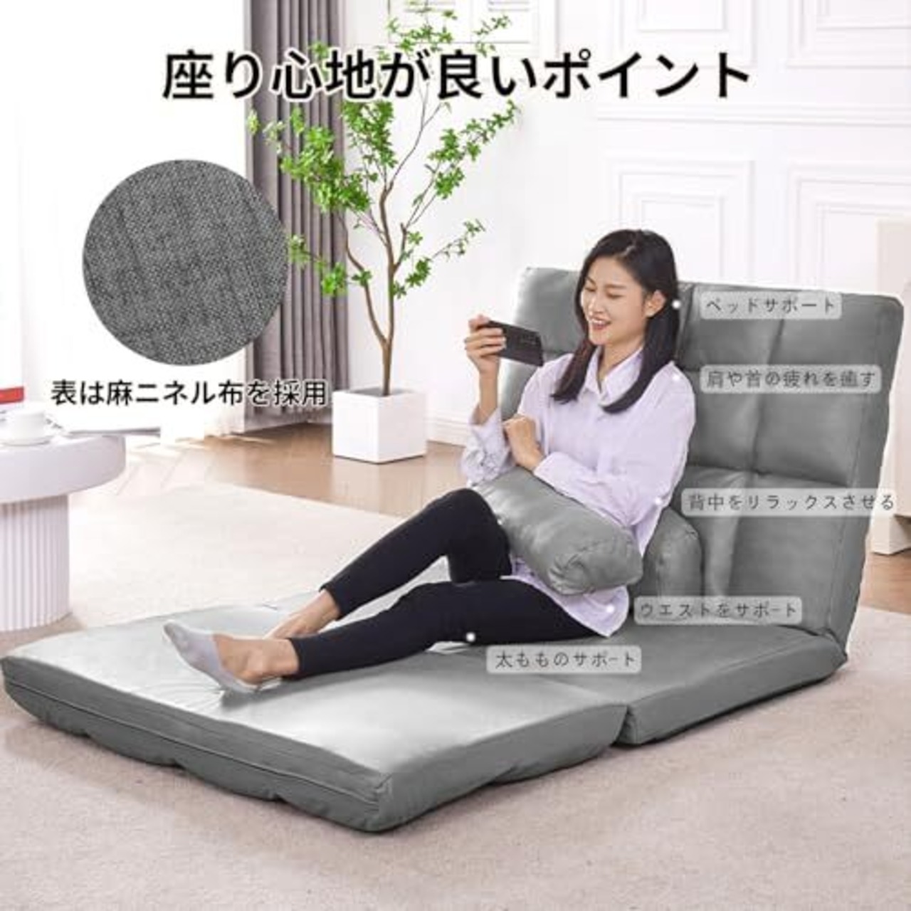 WAVV 座椅子 ソファー 2人掛け フロアソファ 14段階リクライニング 3WAY ローソファ クッション2個付属 折りたたみ 撥水加工 ソファーベッド座椅子(麻リネン布 グレー)