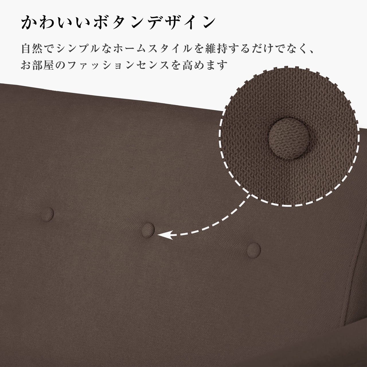 【背部まで洗練されたデザイン】 背もたれ部分も美しく仕上げられており、どの角度から見てもスタイリッシュ。壁際だけでなく、お部屋の中央に置いてもインテリアを格上げします。 】 付属の木脚を取り付ければ高さのあるモダンなソファとして、木脚を外せば床に密着した安定感のあるスタイルとしてご使用いただけます。ご家庭のライフスタイルに合わせてお選びいただけます。