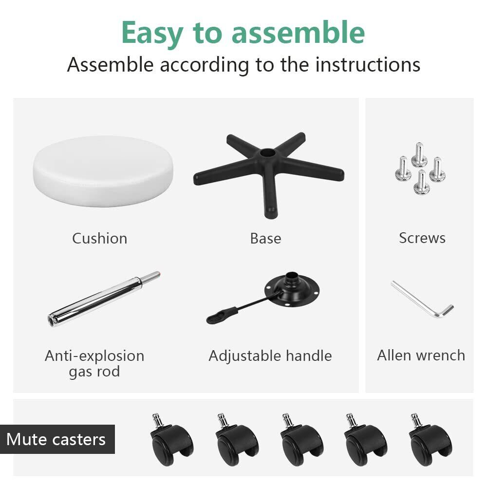 FURWOO スパ椅子 化粧椅子 サロン美髪美容ツール 小さな静音ローラー 高さ調節可能 白いスツール