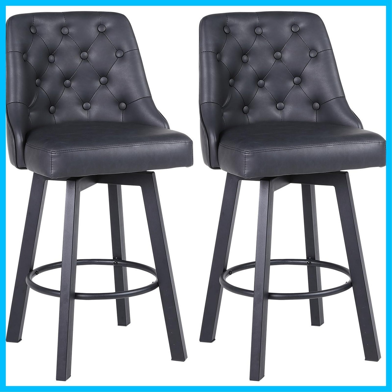 Youhauchair カウンターチェア 2脚セット座面高66.5CM 360°回転式 バー椅子 フットレスト付き 撥水PUレザー メンテナンス簡単 耐荷重150KG キッチン島 リビングチェア 業務用 家庭用 職人技 ブラック