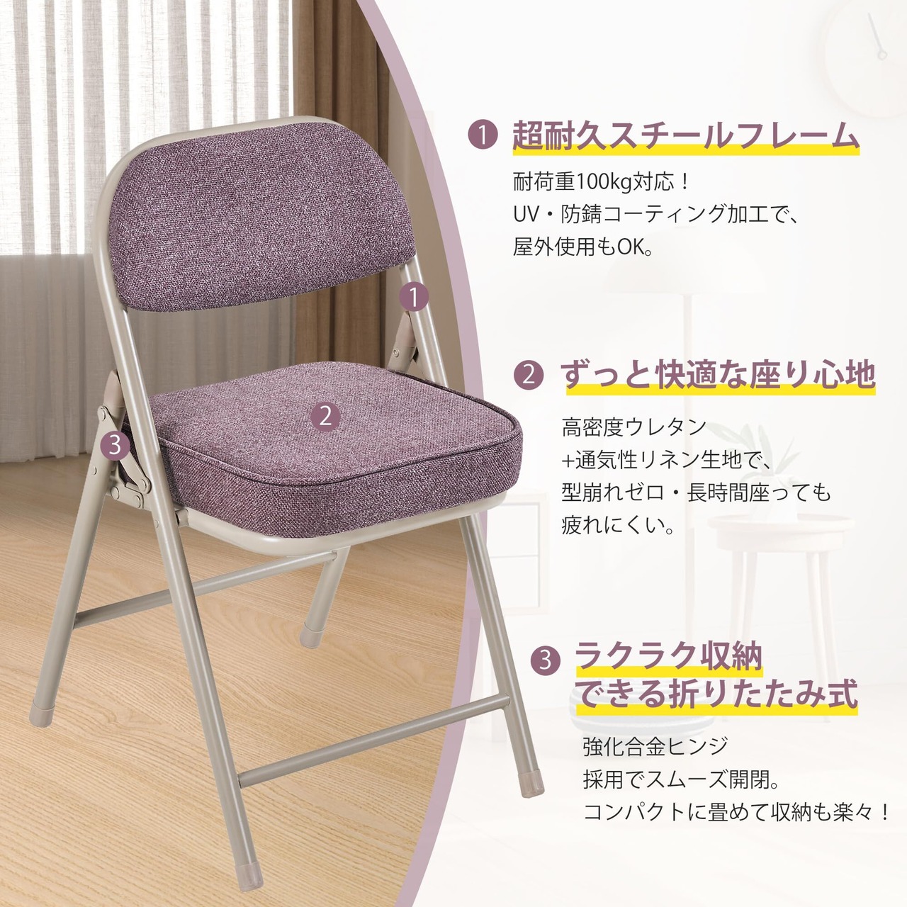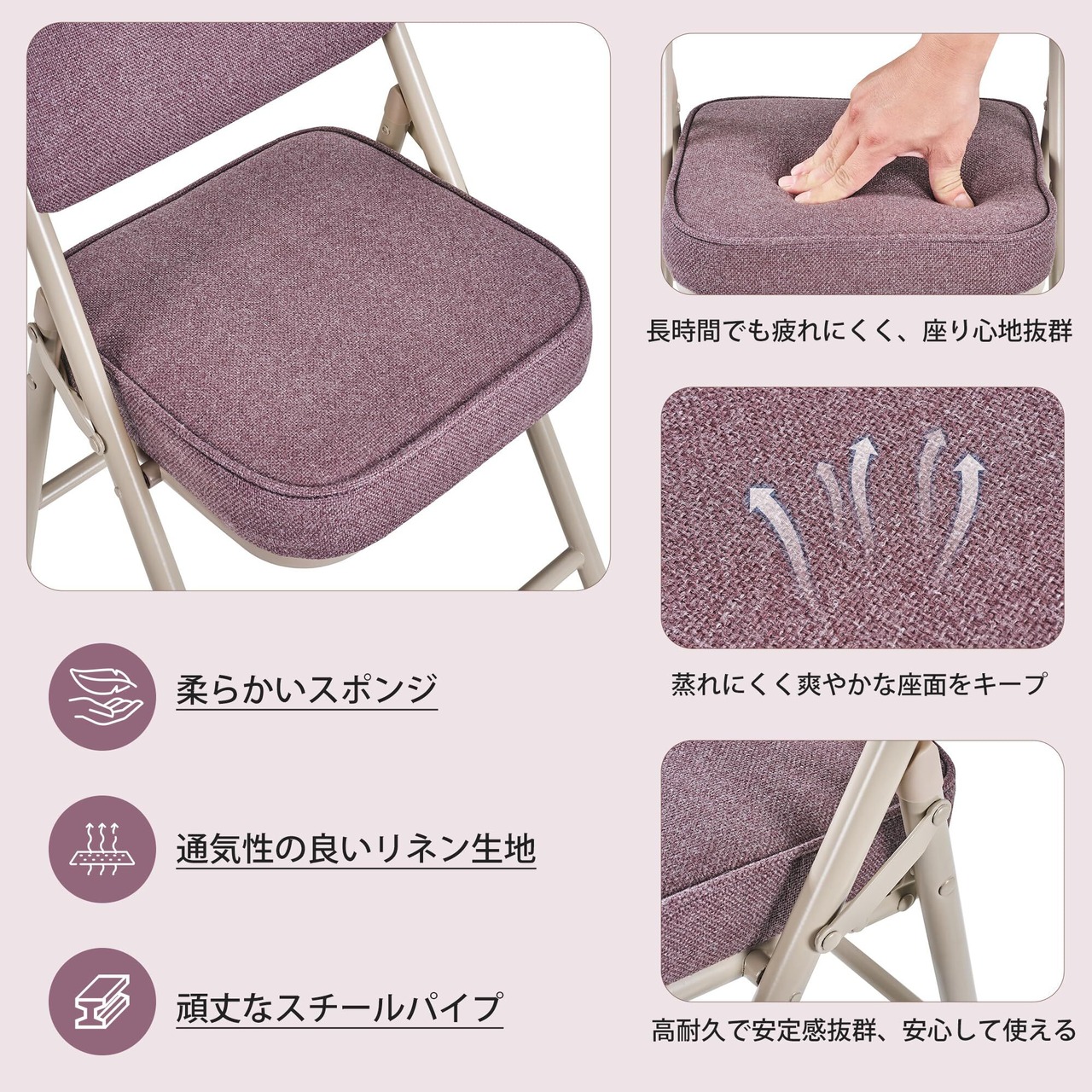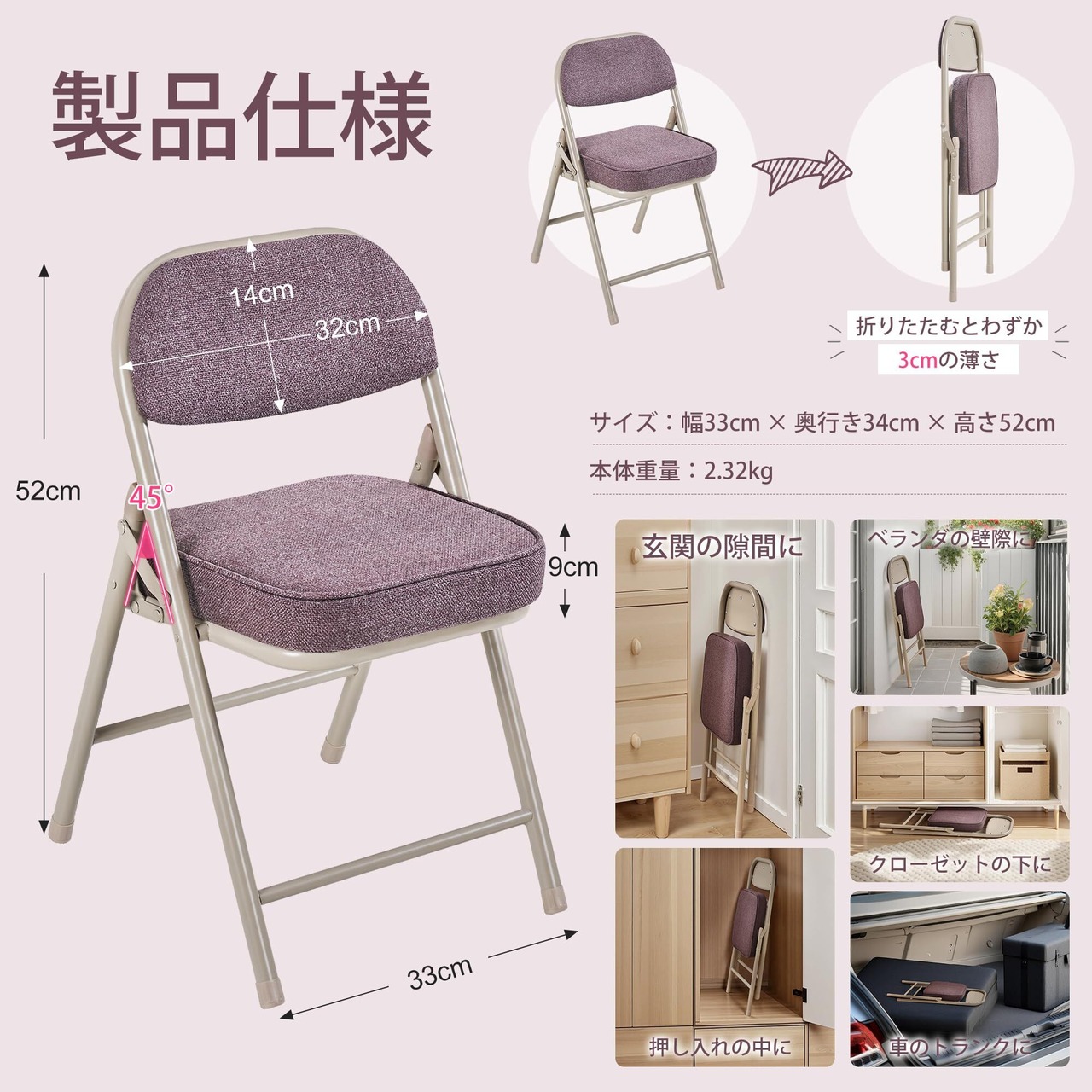 VECELO ミニチェアー 幅33cm × 奥行き34cm × 高さ52cm 2.32kg 折りたたみ椅子 パイプチェアー ロータイプ 背もたれ付き 収納に便利 軽量·持ち運び簡単 コンパクト 組み立て不要 自然素材 通気性 吸湿性 肌触り 抗菌性 安定性 座面のしっかり感 耐荷重100kg ダスティプラム