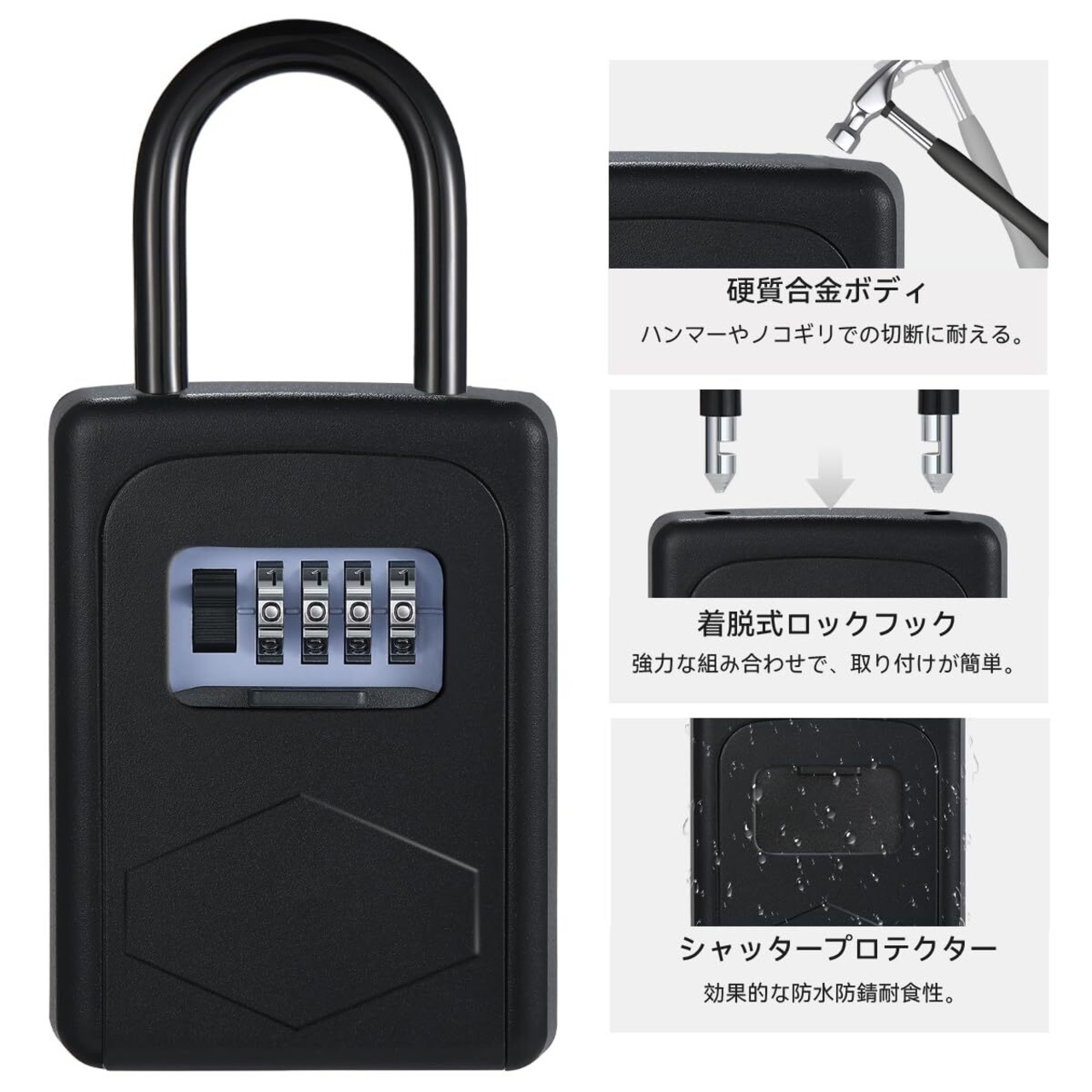 セキュリティ性:4桁の鍵収納ボックスを搭載しており、10000通りの設定番号を自由に選定することができます。使い勝手で安全性が高い。不動産管理、学校、企業、会社、工事現場、事務所、各種介護の現場等の使用に役立ちます。