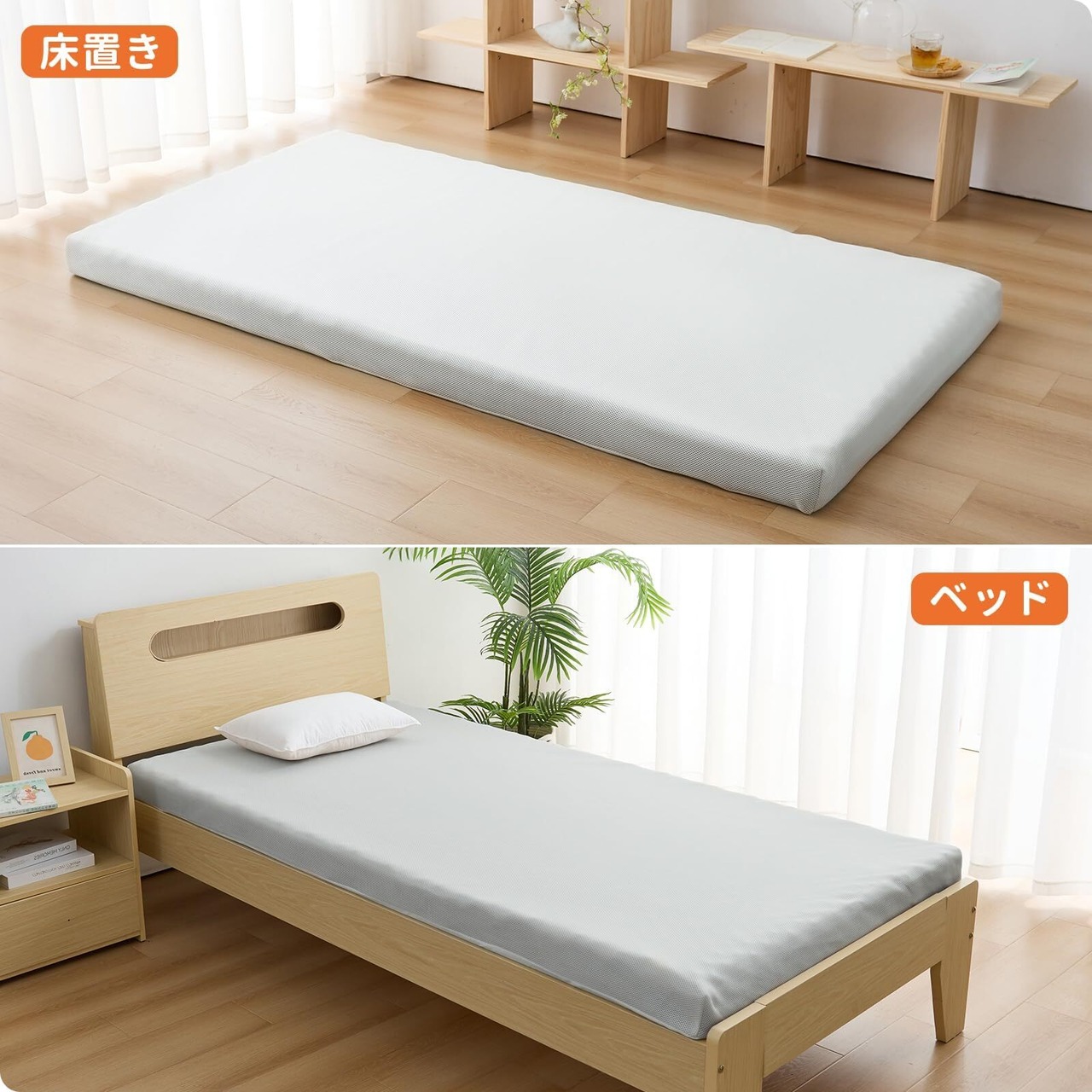 【高反発素材】サイズ:97x195x10cm(シングル);カバーの表地(洗えるカバー):3Dメッシュ、いつでもサラサラ!カバーの裏面:やわらかいマイクロファイバー生地。中材:厚さ10cmの凹凸加工高反発ウレタンフォーム(復元率98%、密度24D、硬さ190N)-高反発ウレタンは、優れたクッション性と復元性で過度な沈み込みを抑え下から持ち上げるように体を支えて、長期間使用していても形崩れにくい、あなたの快眠をサポートします。