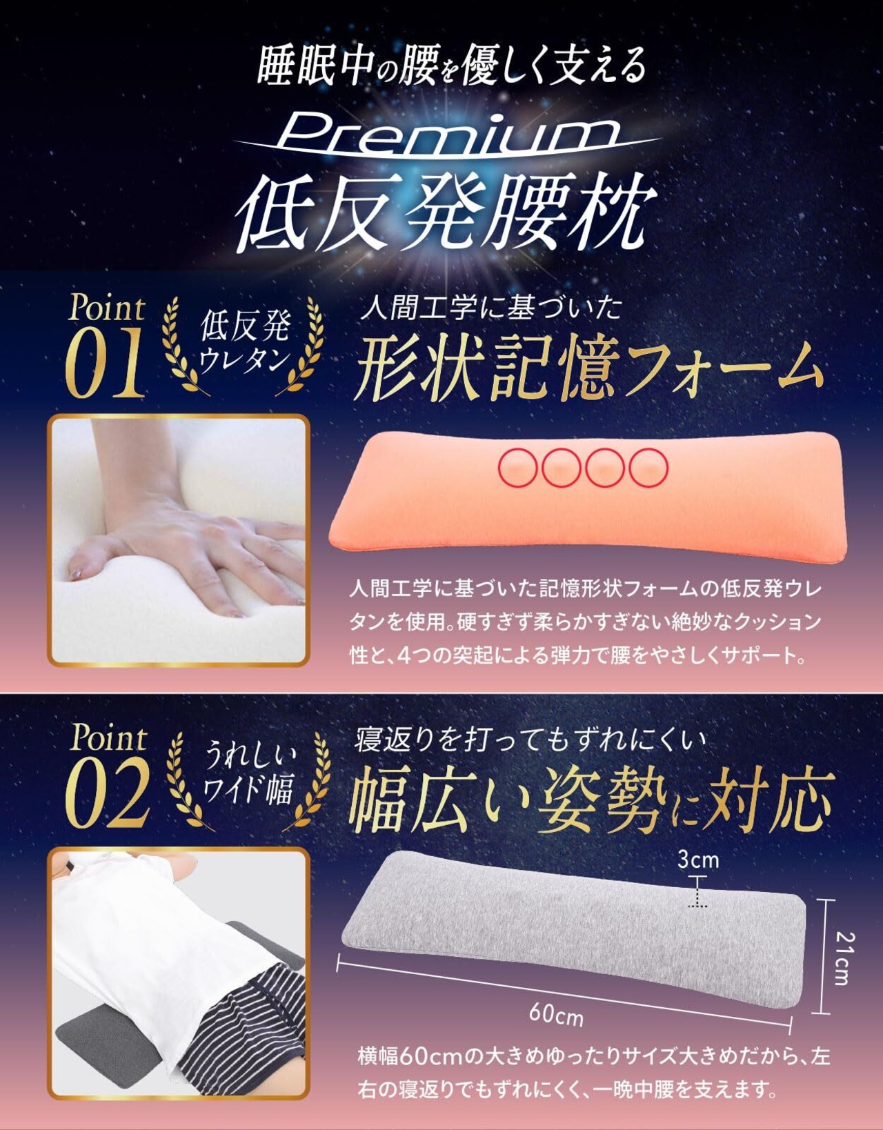 腰枕 腰痛改善 【寝ている間に腰をリセット!】低反発 就寝用 (ダークグレー)