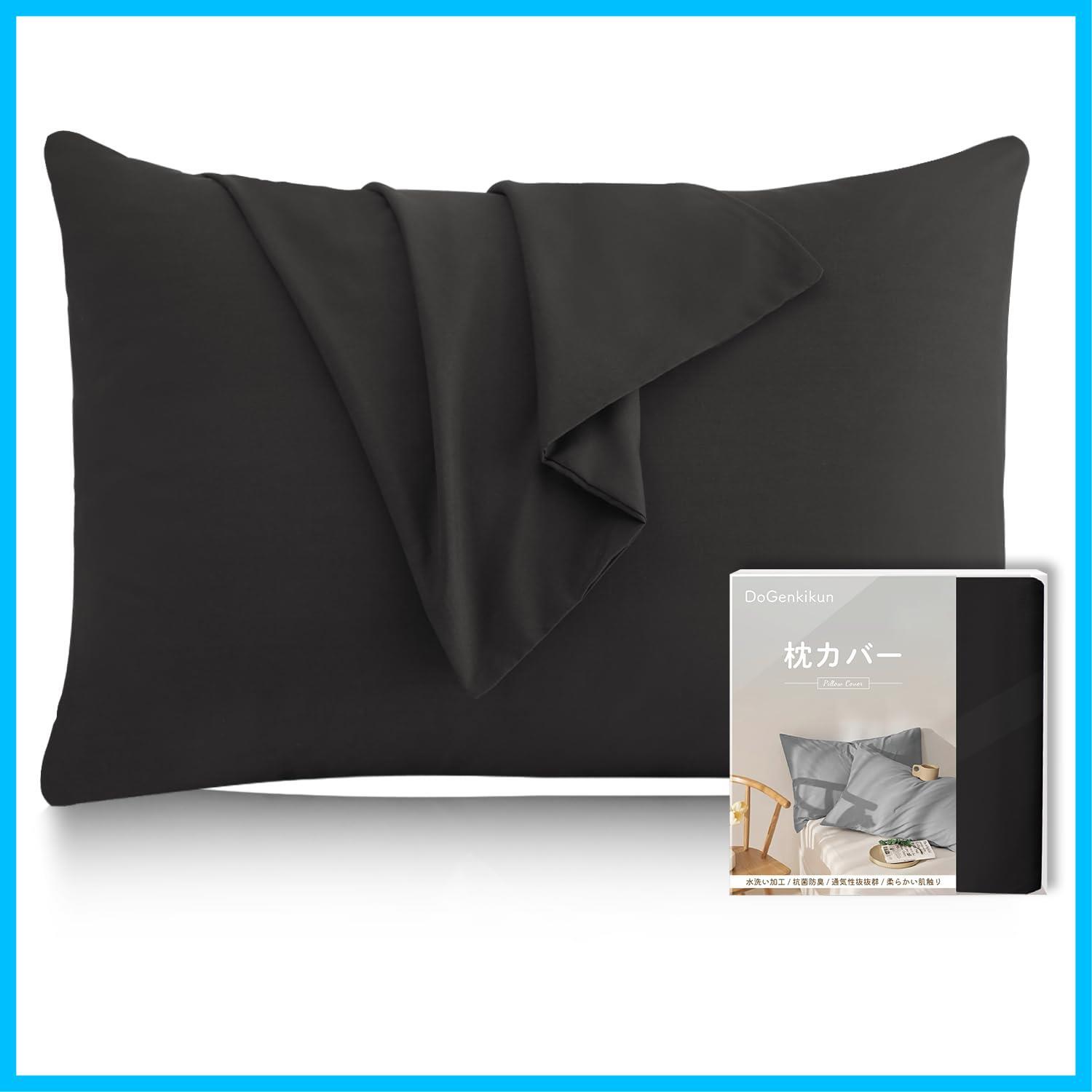 【特価セール】DoGenkikun 枕カバー 43 63 ピローケース まくらカバー 【防ダニ99.9%・自動消臭繊維・敏感肌専門】ホテル品質 封筒式 通気性 吸水速乾 丸洗いOK 抗菌防臭 防ダニ 肌に優しい 着脱簡単 1枚セット (43×63cm ブラック)