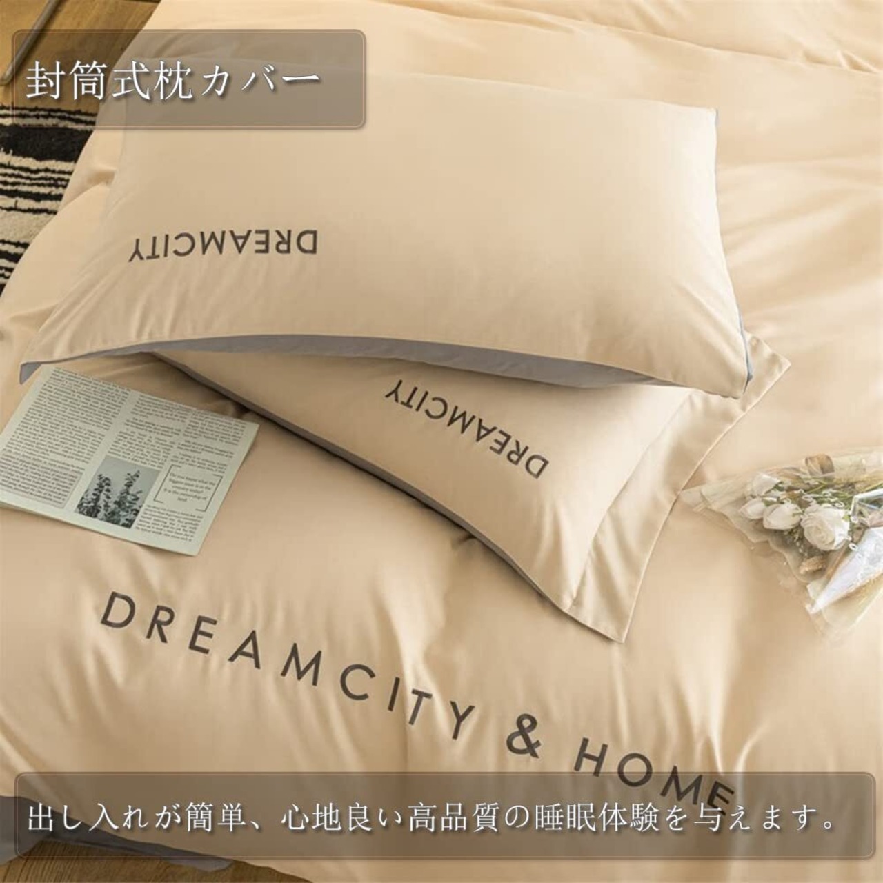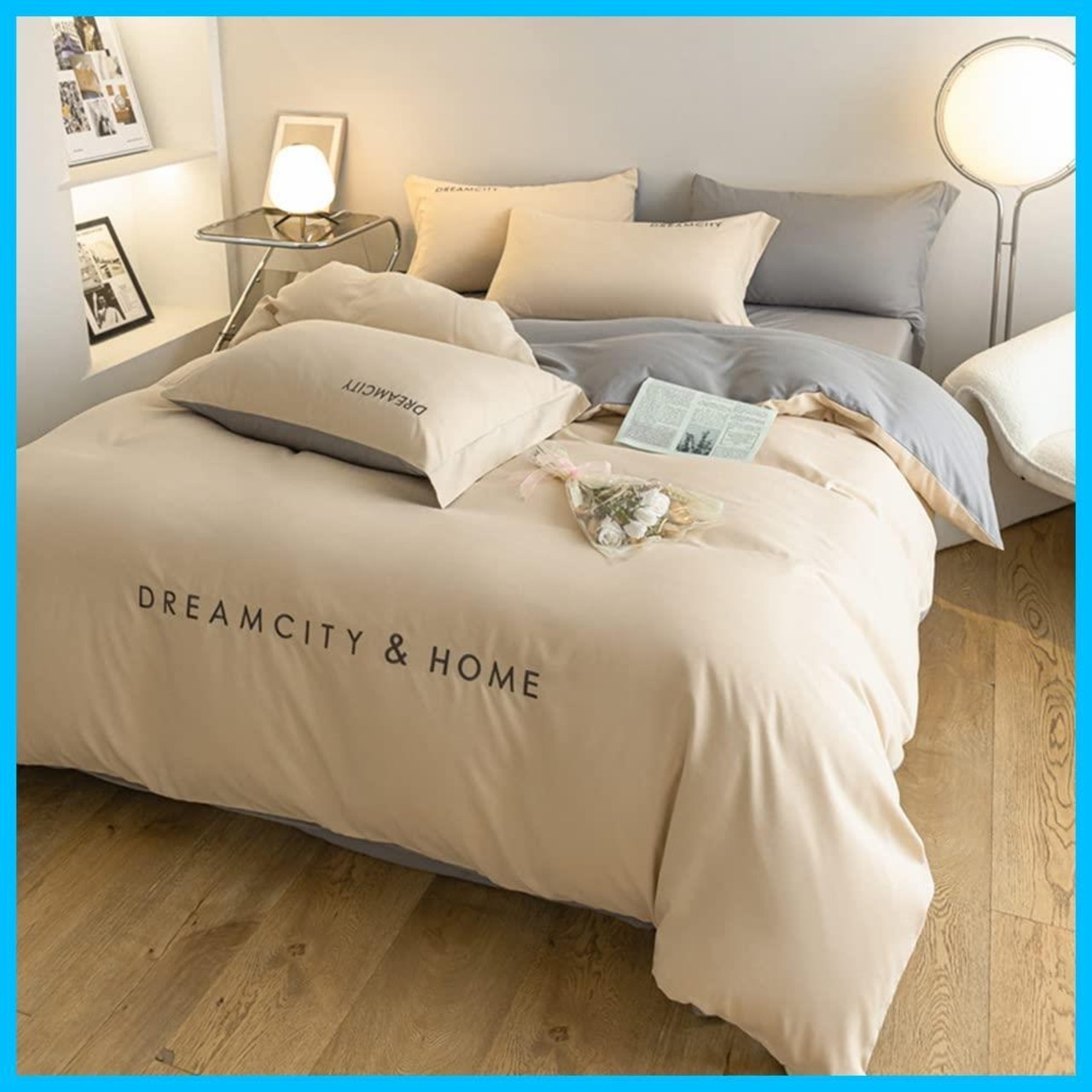 【 限定】 布団カバー 綿 100% セミダブル 4点セット 寝具カバーセット 刺繍 洋式・和式兼用 無地 掛け布団カバー ボックスシーツ 枕カバー ベッド用 布団用 高密度生地 布団カバーセット 洗い替え速乾タイプ 防ダニ (セミダブル,ミルクティーカラー&グレー)