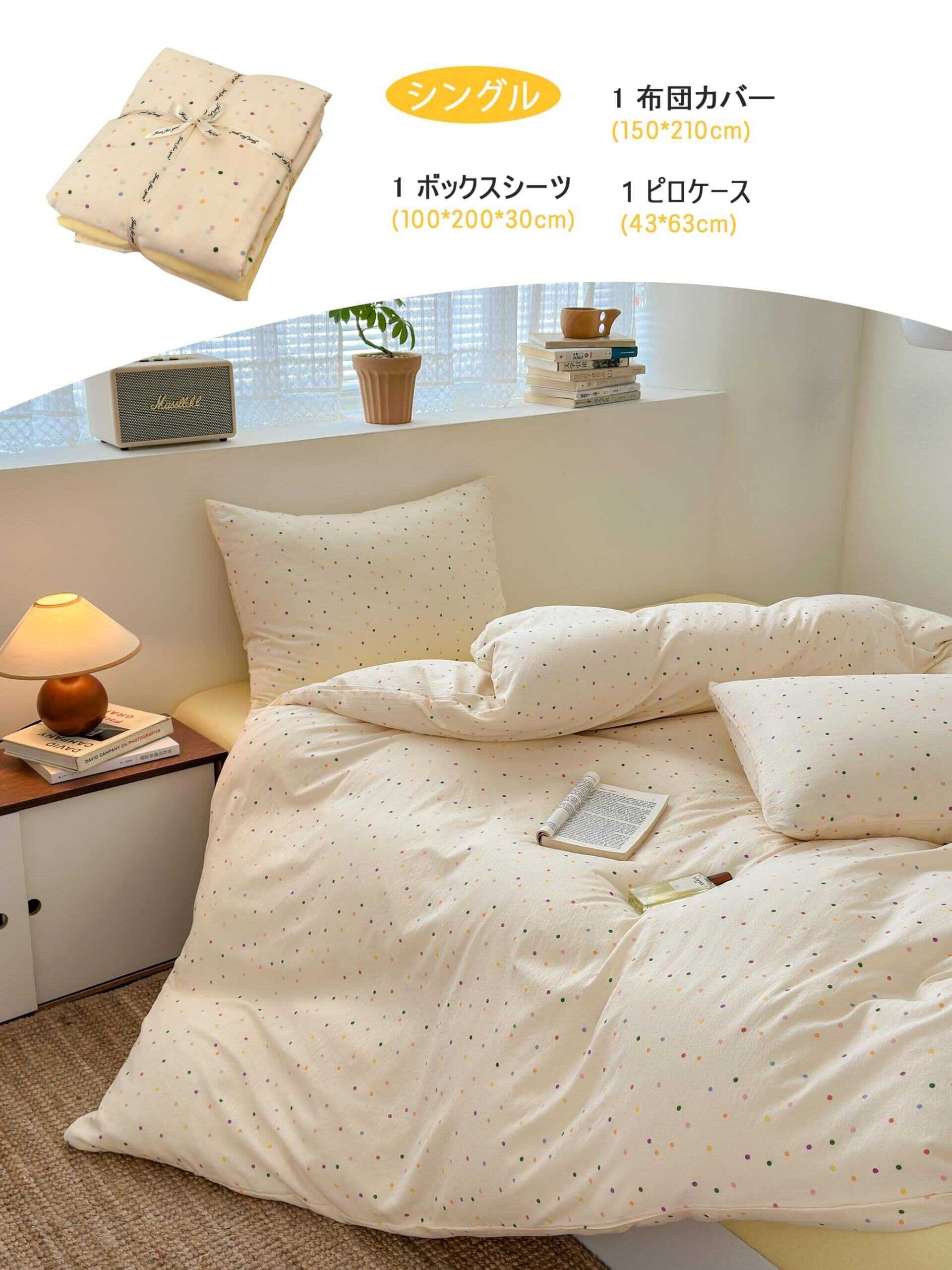 YYHNOOOOK 布団カバー 3点セット シングル 寝具カバーセット 掛け布団カバー 肌触りが良い ボックスシーツ 枕カバー ベッド用 布団用 丸洗いOK ズレ防止 ヒモ付き (水玉柄, シングル・3点セット)
