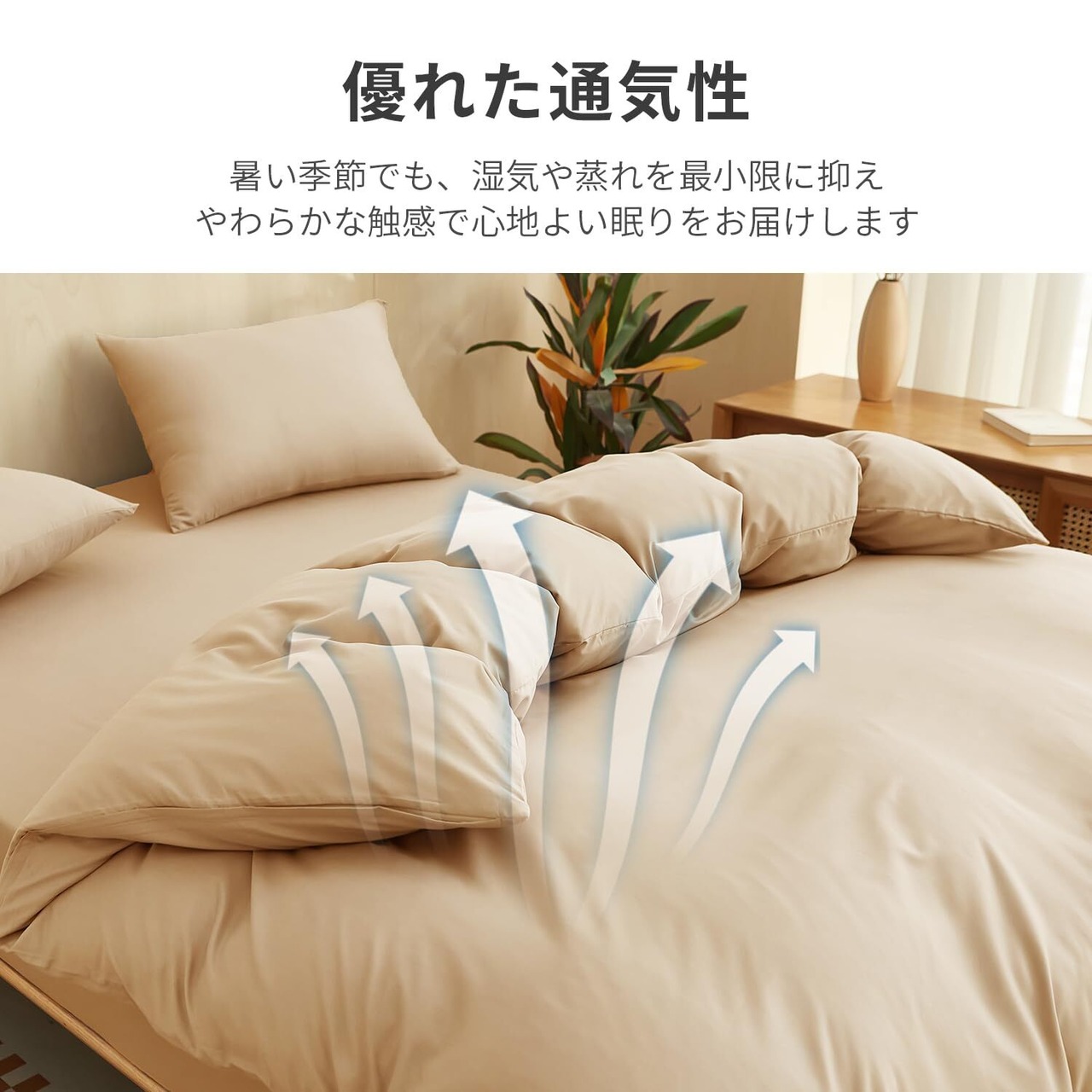 AZRA 掛け布団カバー シングル 150X210cm チャック付き おしゃれ オールシーズン ピーチスキン加工 通気 速乾 内側6ヵ所に紐付き 長辺全面ファスナータイプ 出し入れ簡単 ベージュ