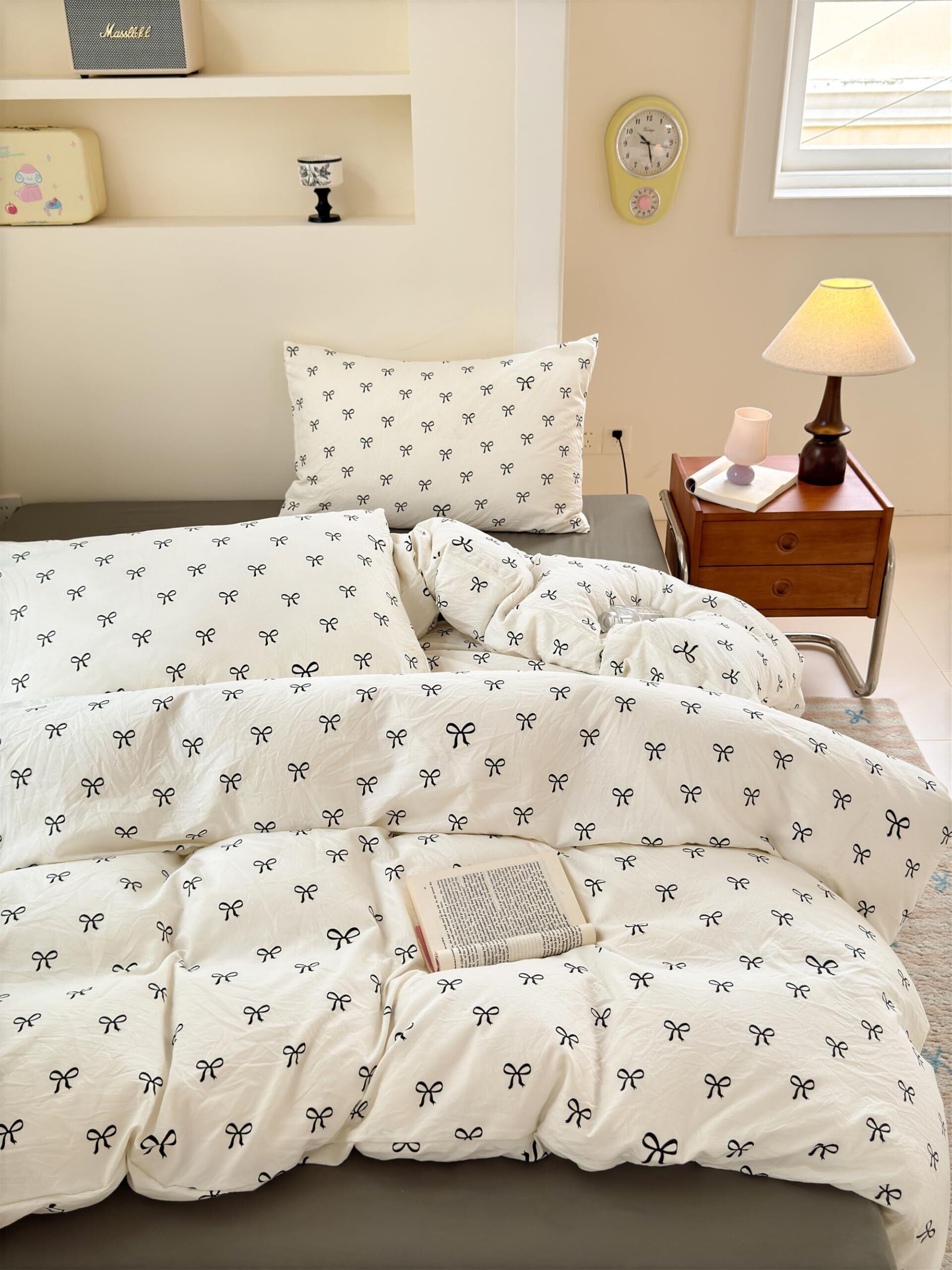 【在庫セール】YYHNOOOOK 布団カバー セミダブル-4点セット 洋式・和式兼用 布団カバー・ボックスシーツ・枕カバー セット 四季通用 洗い替え速乾 ベッド用 布団用 丸洗いOK (黒い蝶, SDセミダブル-4点セット)