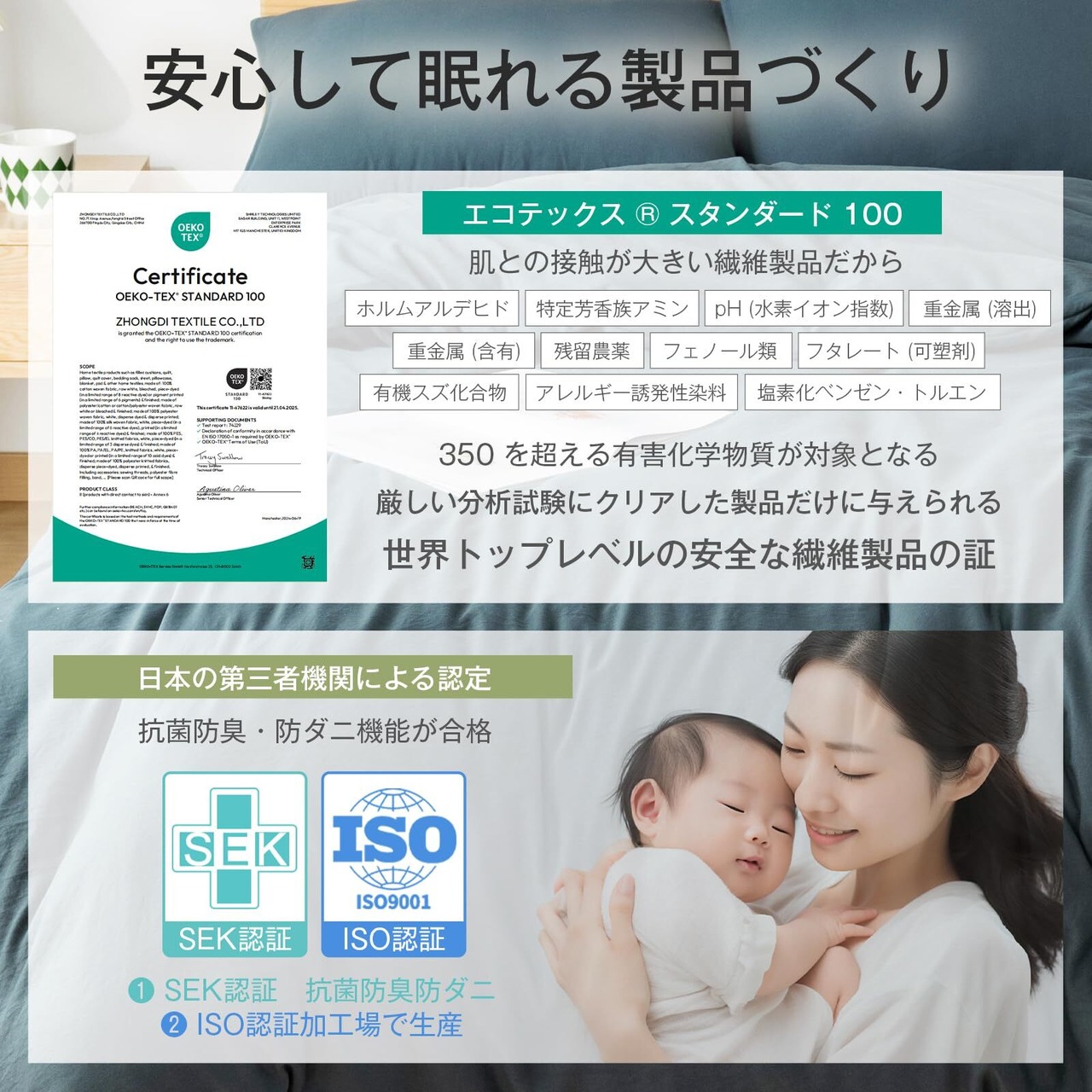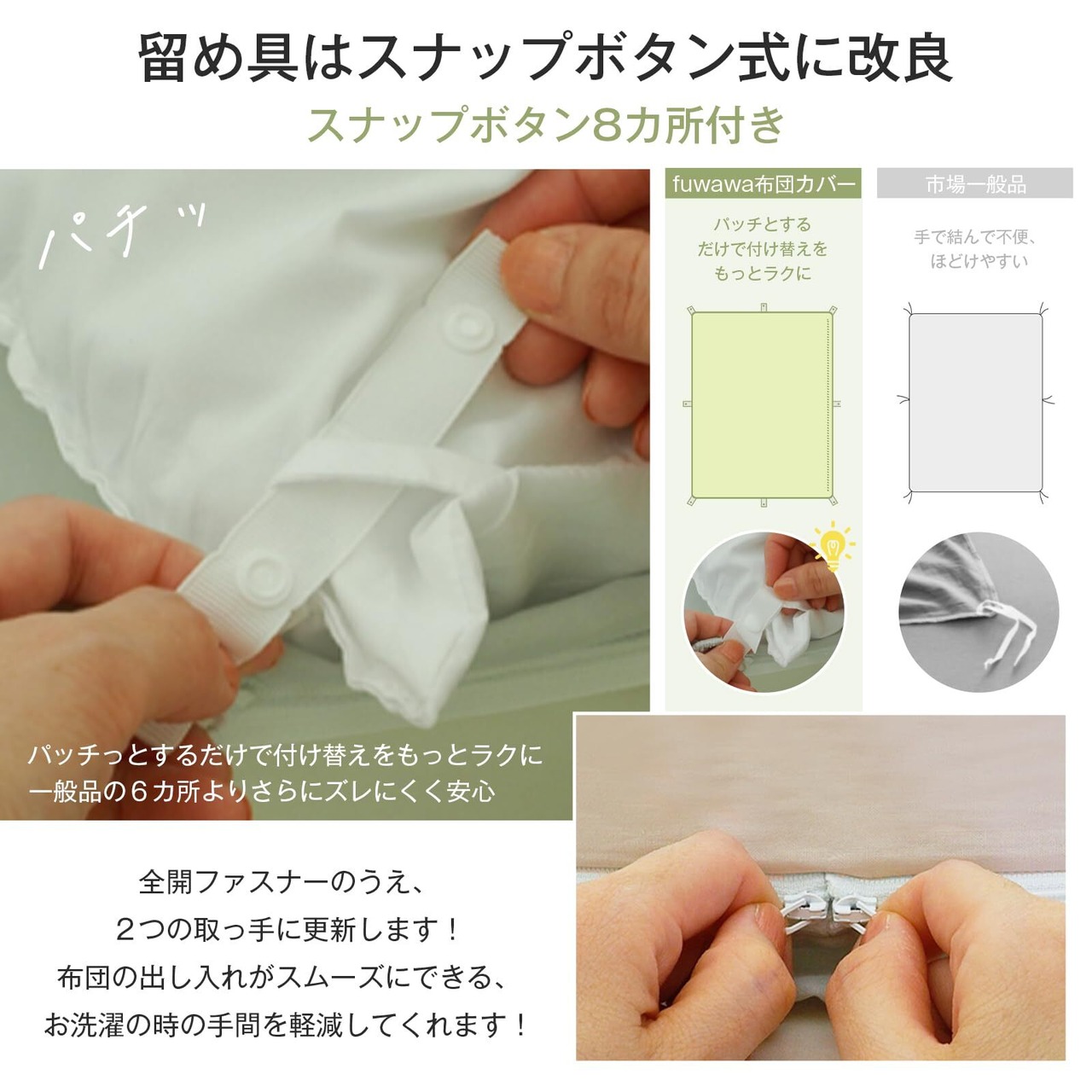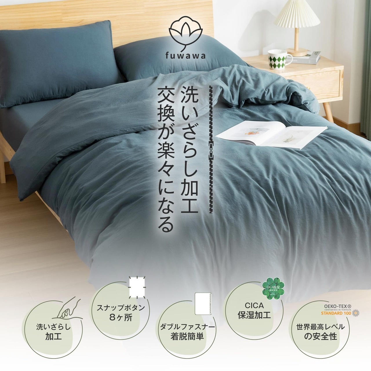 【特価セール】fuwawa 掛け布団カバー シングル 【洗いざらし・CICA保湿加工・極柔な肌触り】かけ布団カバー 超吸水速乾 8箇所スナップボタン ダブルファスナー 【防ダニ99.9%・エッコテックス認定・アレルギー対策】シワ加工 ピーチスキン しっとり 丸洗い SEK抗菌防臭 オールシーズン布団カバー 日本企画(シングル・150X210cm スモーキーネイビー)