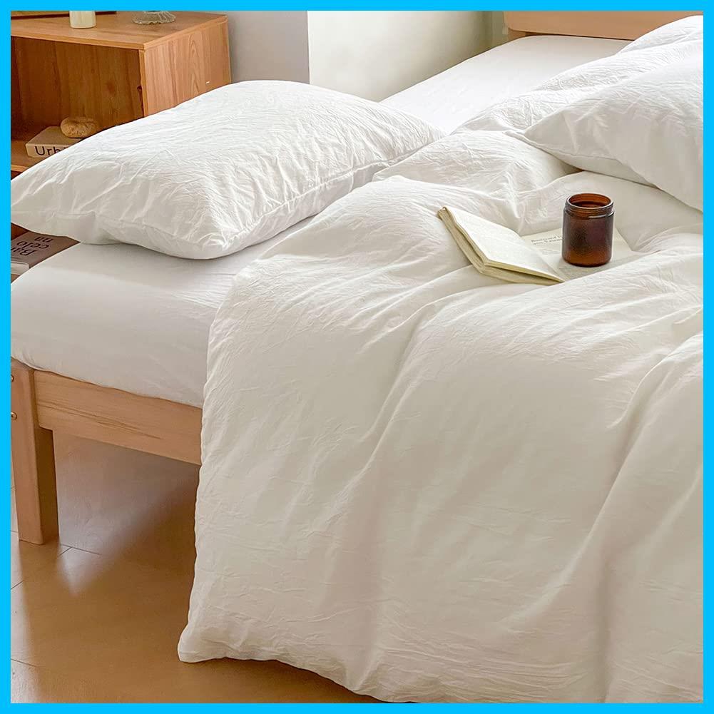 掛け布団カバー シングル オーガニックコットン 綿100% 掛けふとんカバー ふとんカバー 布団カバー 綿洗いざらし オールシーズン 無地 北欧 150*210CM 8ヶ所ヒモ付き 洗い替え 防ダニ 防シワ 速乾 通気 オフホワイト