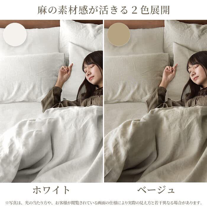 フランス北部やベルギーなどヨーロッパの上質なリネンを 使用したカバーリングシリーズ。 国内縫製だから、 丈夫で高品質。 「国際規格エコテックス100認証商品」 で安心にも配慮しました。 春用、夏用、秋用、冬用オールシーズン使用できます。 新生活のスタートにおすすめの3点セットや4点セットもご用意しております。 通気性、速乾性にも優れた麻素材の布団カバーです。 ベージュカラーは天然の繊維そのもののカラーで、 染色加工などは一切しておりません。そのため、織り糸の産地や入荷時期により カラーにバラツキがでます。ご了承ください。 ・素材の特性上、洗濯により毛羽が落ちますので、洗濯時には ゴミ取りネットなどを使用いただき、単品洗いをお勧めいたします。 お洗濯を繰り返すことで徐々になくなります。 ・自然の風合いを保つため、漂白剤・蛍光増白剤のご使用は お避けください。環境問題に考慮して有機塩素化合物(AOX)を生成しない 過酸化水素漂白を使用しております。 無塩素加工のため、色合いや風合いに多少個体差がございます。