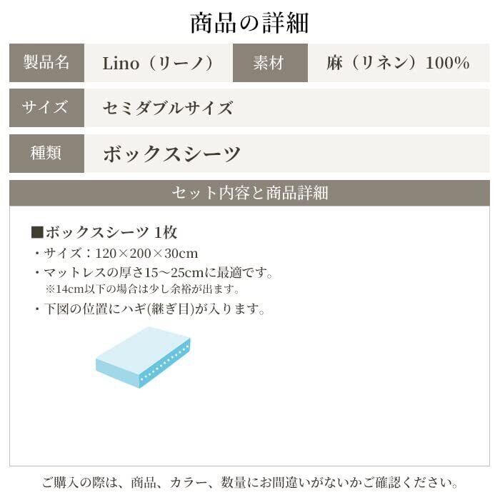 ベッドシーツ 麻 100% 日本製 ホワイト セミダブルサイズ 120×200×30cm Lino リネン ボックスシーツ おしゃれ 北欧 洗える スリープテイラー リーノ