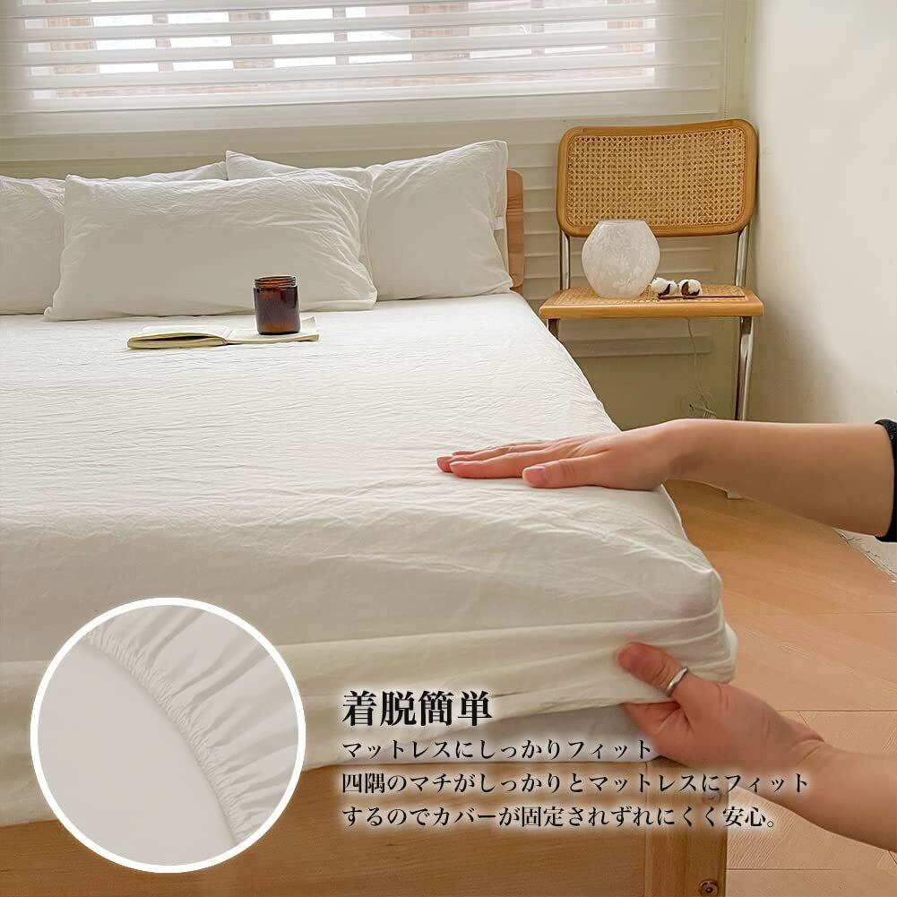 【人気商品】ボックスシーツ セミダブル オーガニックコットン 綿100% 綿洗いざらし ベッドシーツ マットレスカバー BOXシーツ オールシーズン 120×200×30cm 単品売り 防ダニ 全周ゴム付き 洗える 毛玉なし オフホワイト