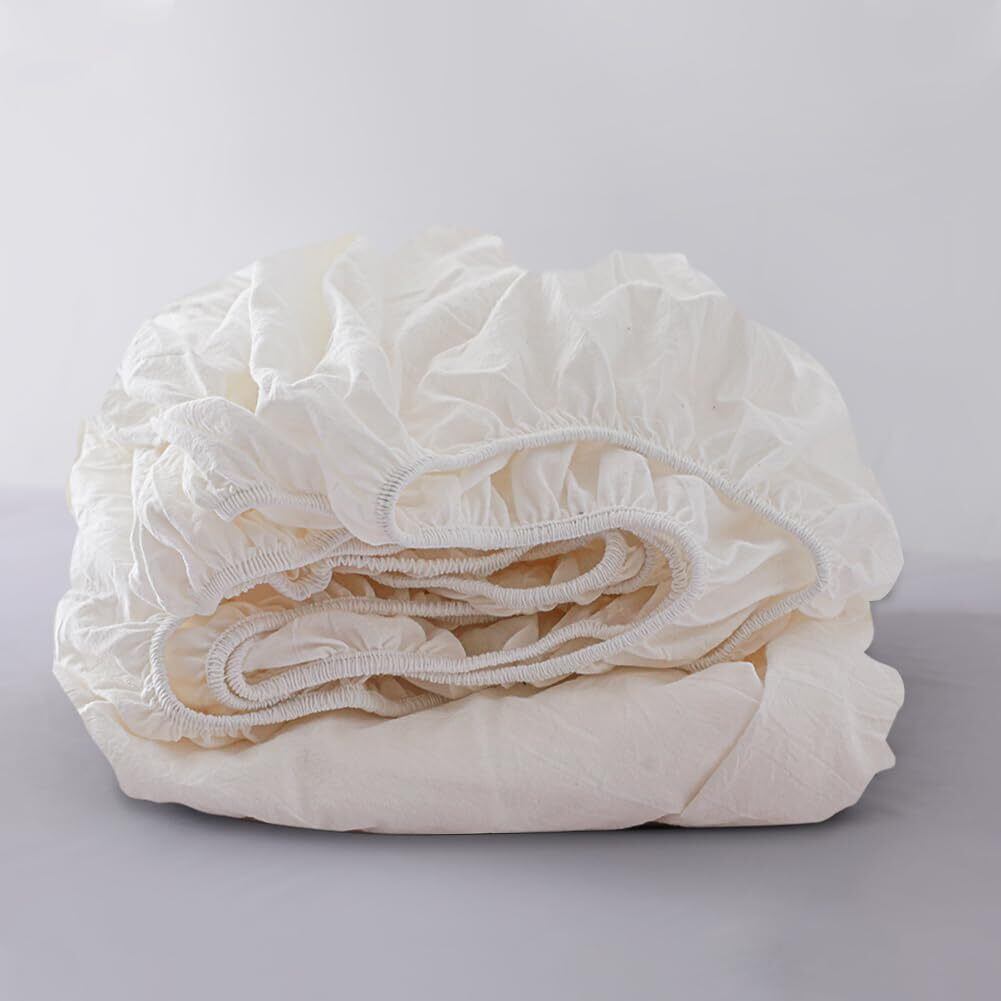 ボックスシーツ セミダブル オーガニックコットン 綿100% 綿洗いざらし ベッドシーツ マットレスカバー BOXシーツ オールシーズン 120×200×30cm 単品売り 防ダニ 全周ゴム付き 洗える 毛玉なし オフホワイト