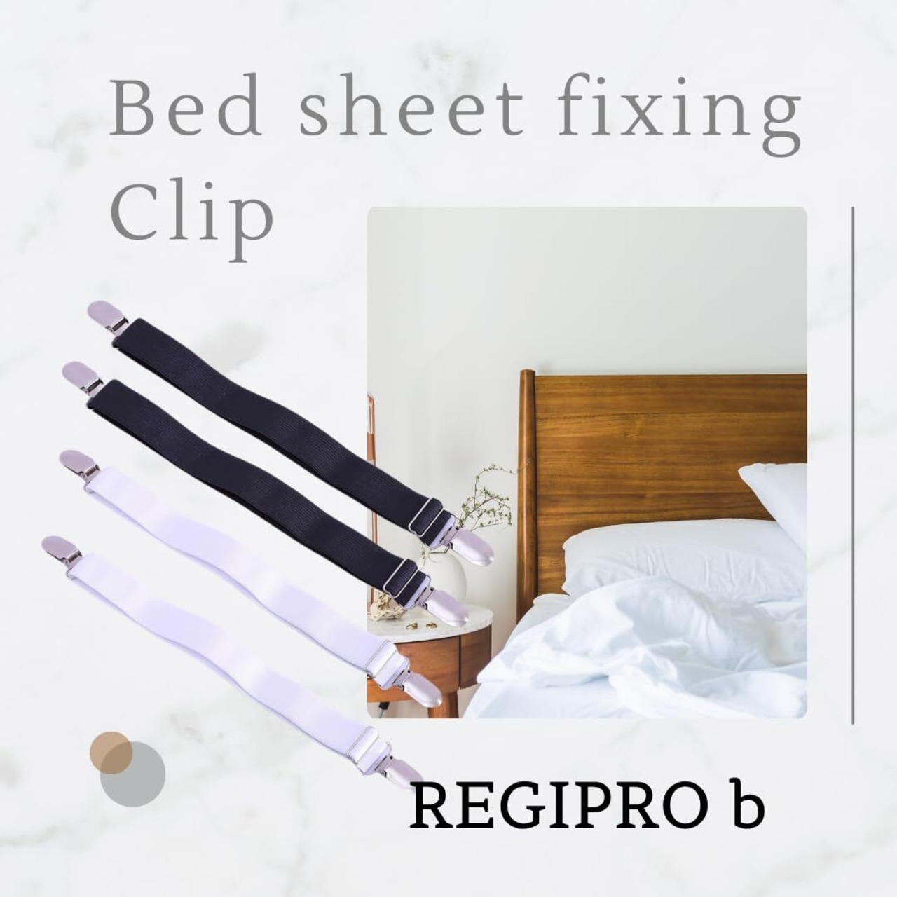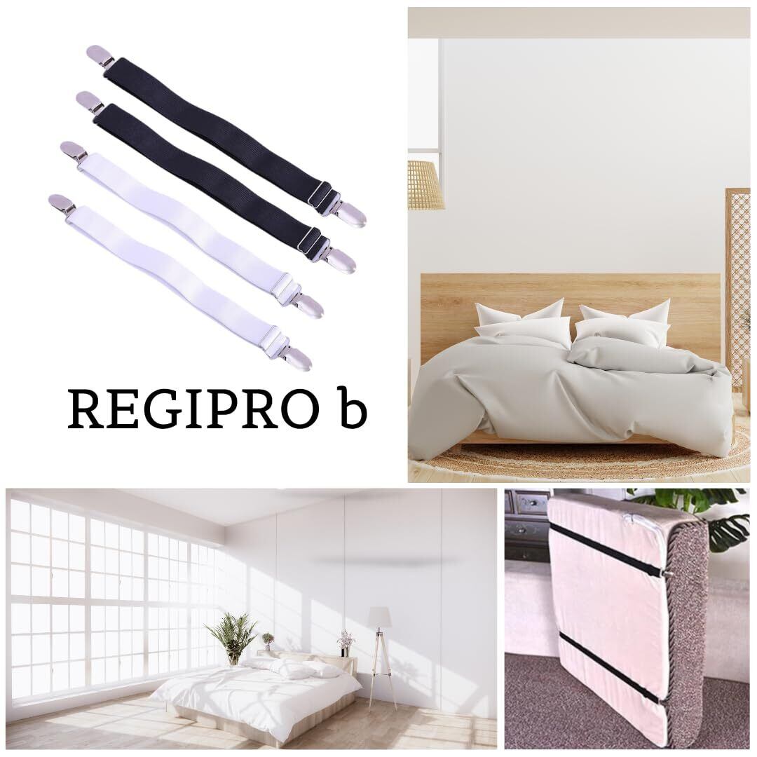 【数量限定】レジプロb ベッドシーツ固定クリップ 布団ズレ防止 ゴムバンド 50-180cm 調整可能 4本入り (ホワイト)