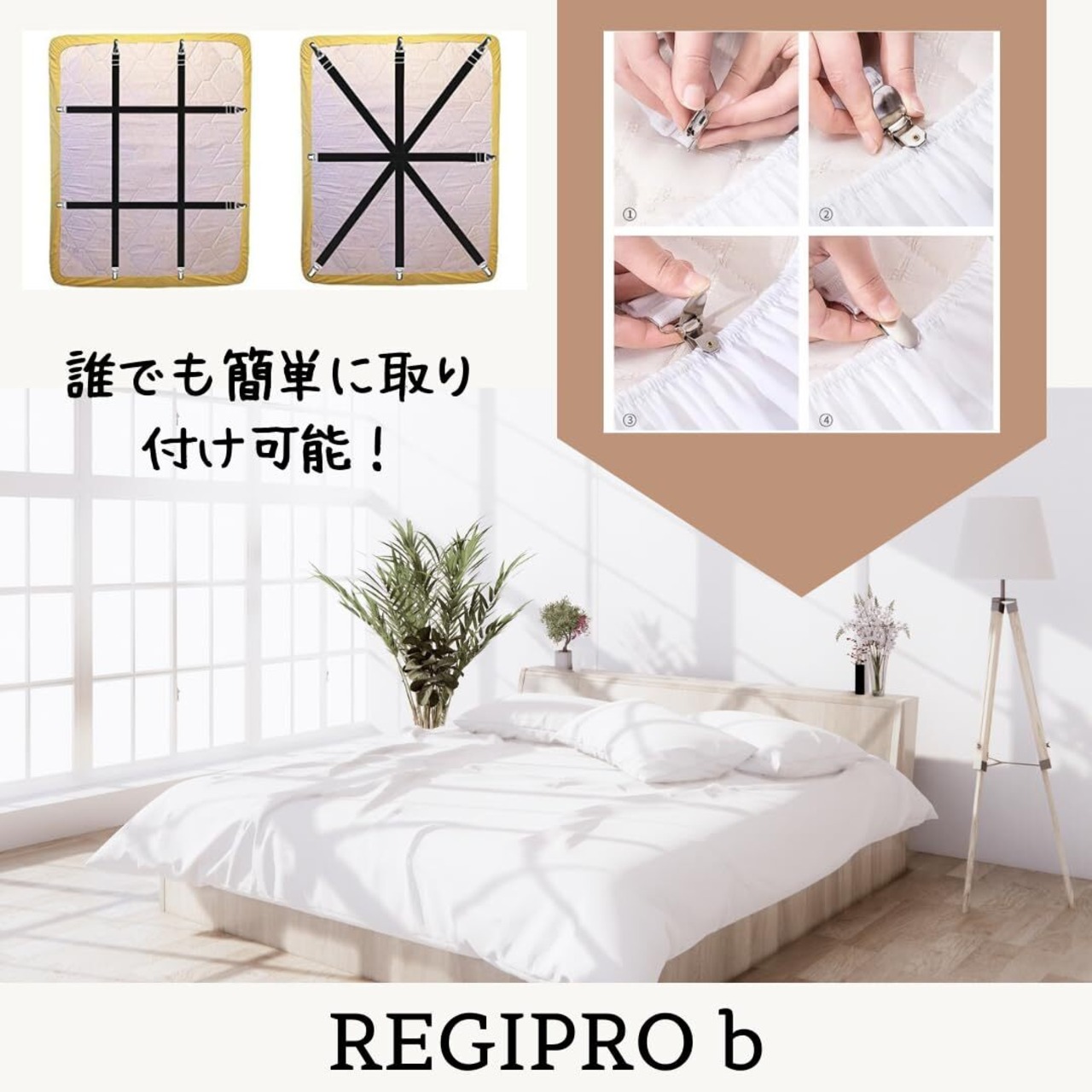 レジプロb ベッドシーツ固定クリップ 布団ズレ防止 ゴムバンド 50-180cm 調整可能 4本入り (ホワイト)