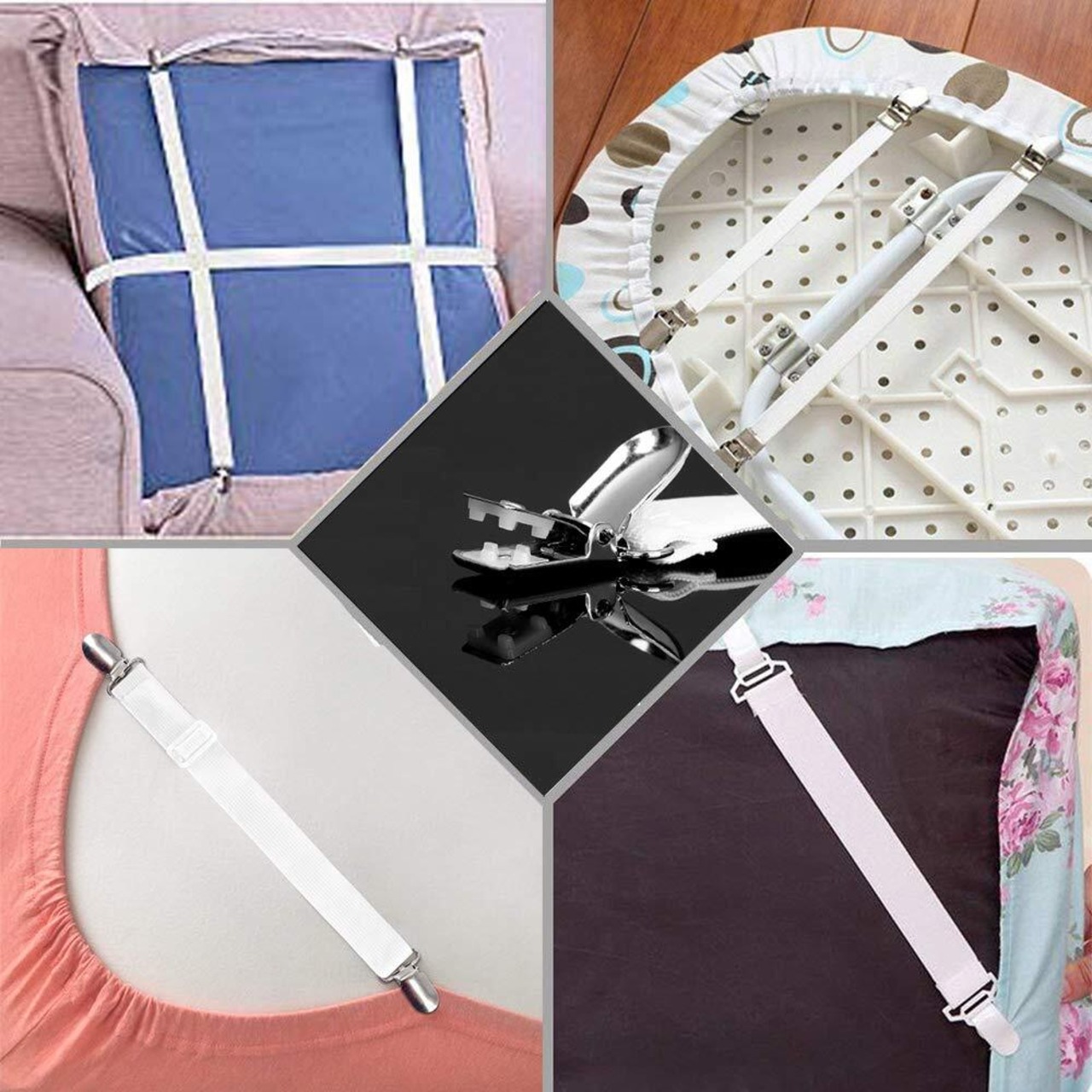 【適用場所】フラットシーツ、ソファー サスペンダー、敷パッド、ベッドカバ、アイロン台シーツ、マットレス カバー ソファーカバなどの端をクリップで挟むことで、シーツがズレないようになります。