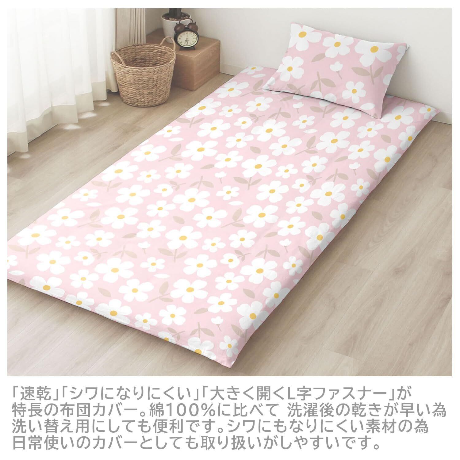 「速乾」「シワになりにくい」「L字ファスナー」が特長の取り扱いがしやすい布団カバー。綿100%に比べて 洗濯後の乾きが早い為 洗い替え用にしても便利です。またシワにもなりにくい素材の為 取り扱いがしやすいです。ご家庭で洗えるのでいつでも清潔にお使い頂けます。